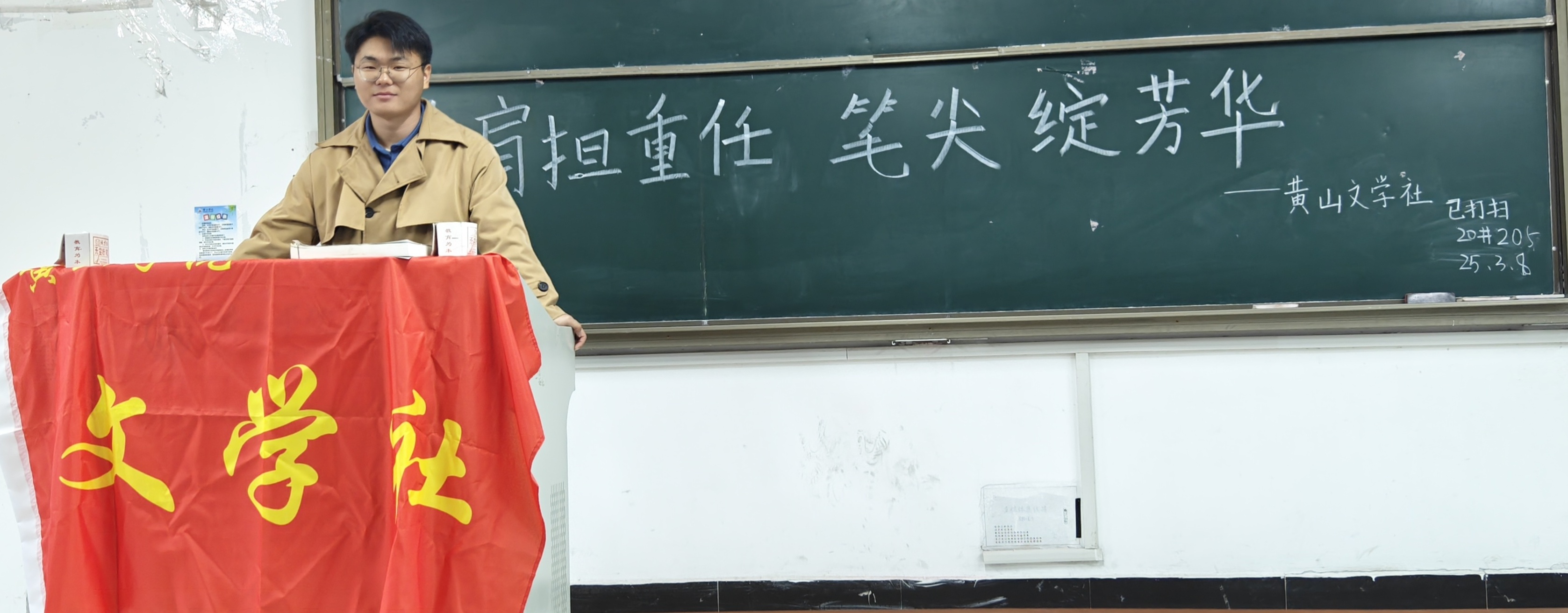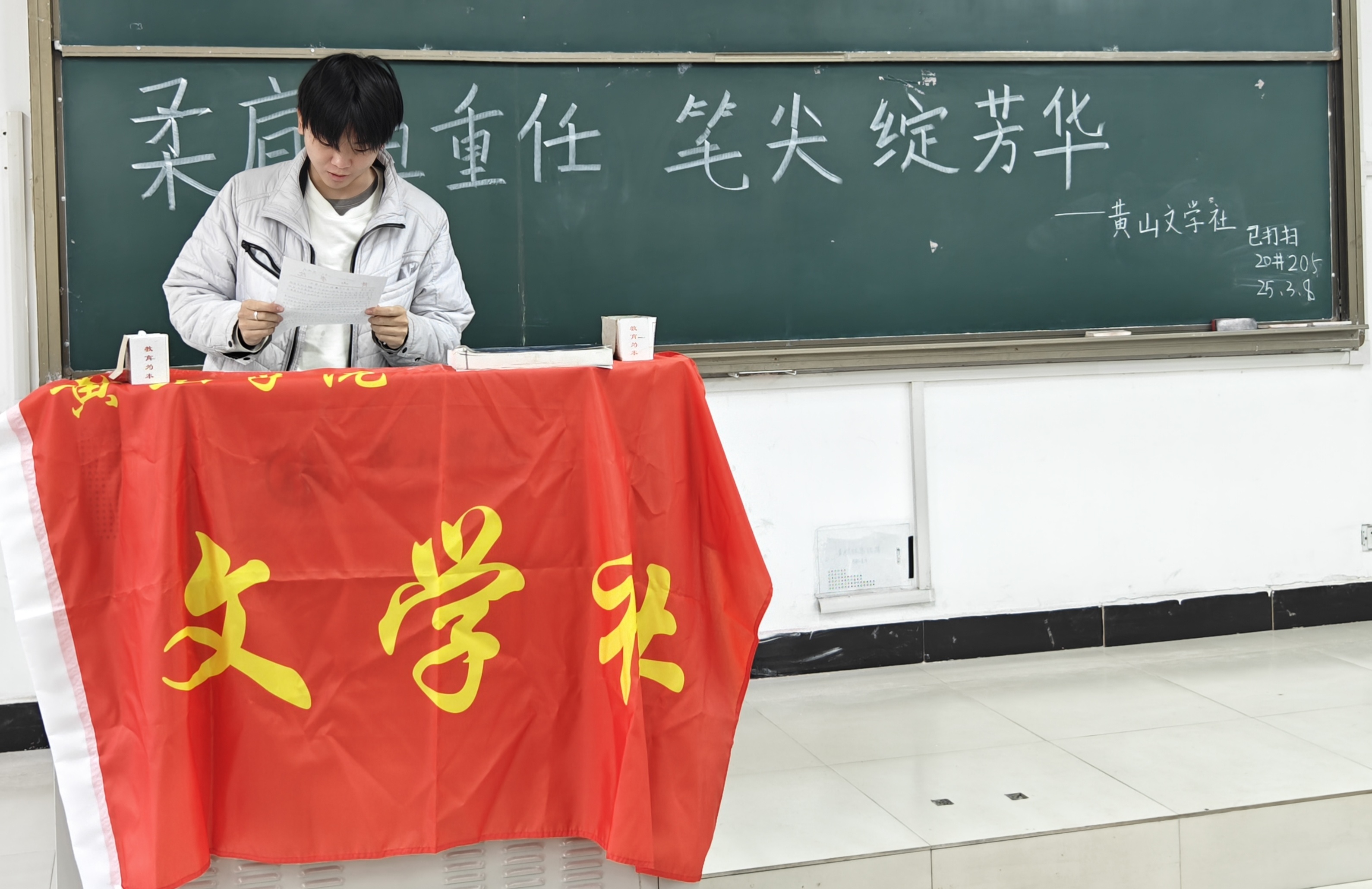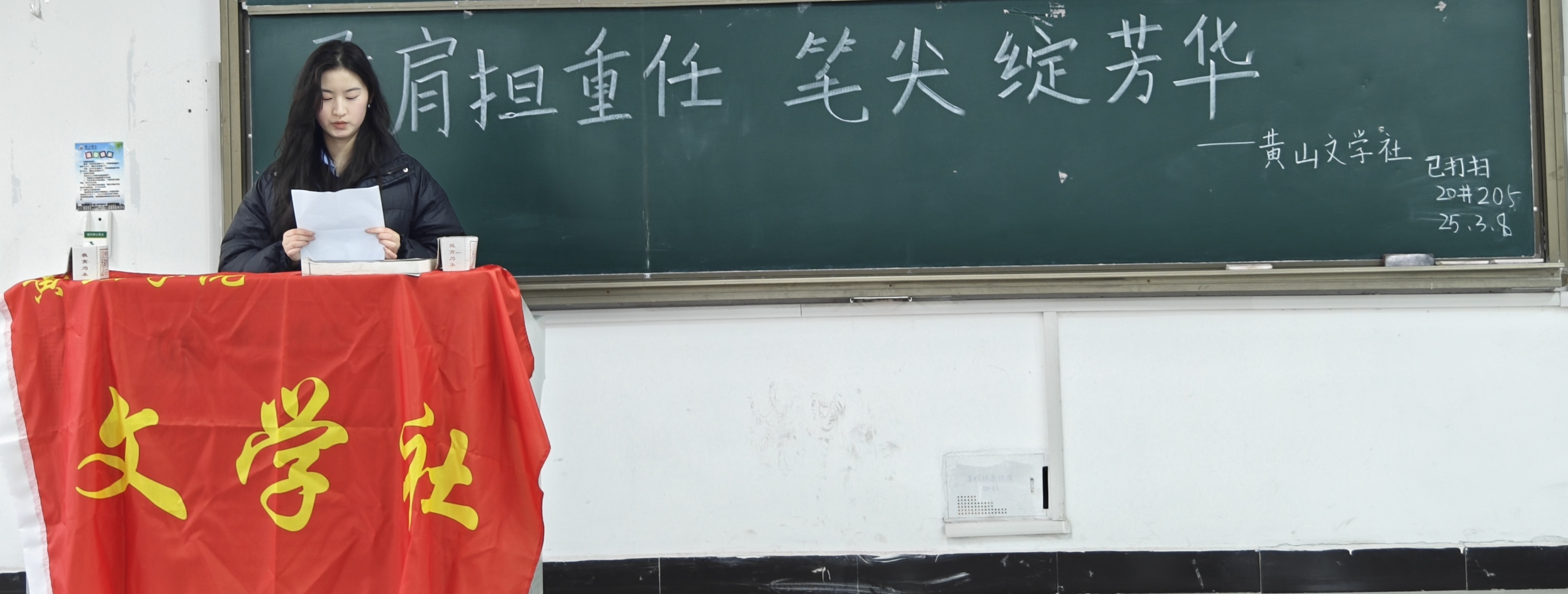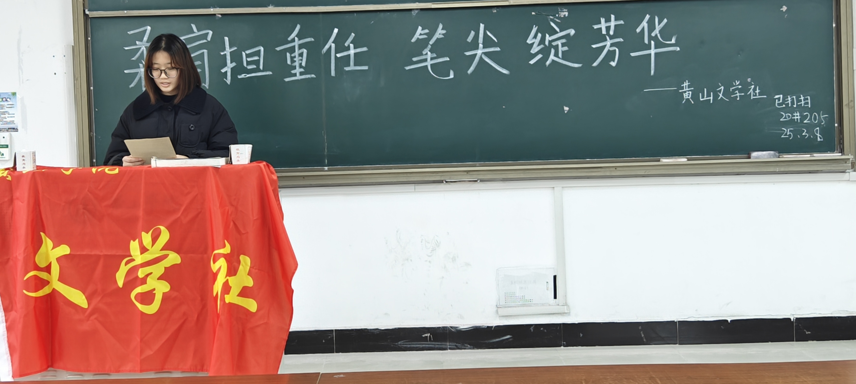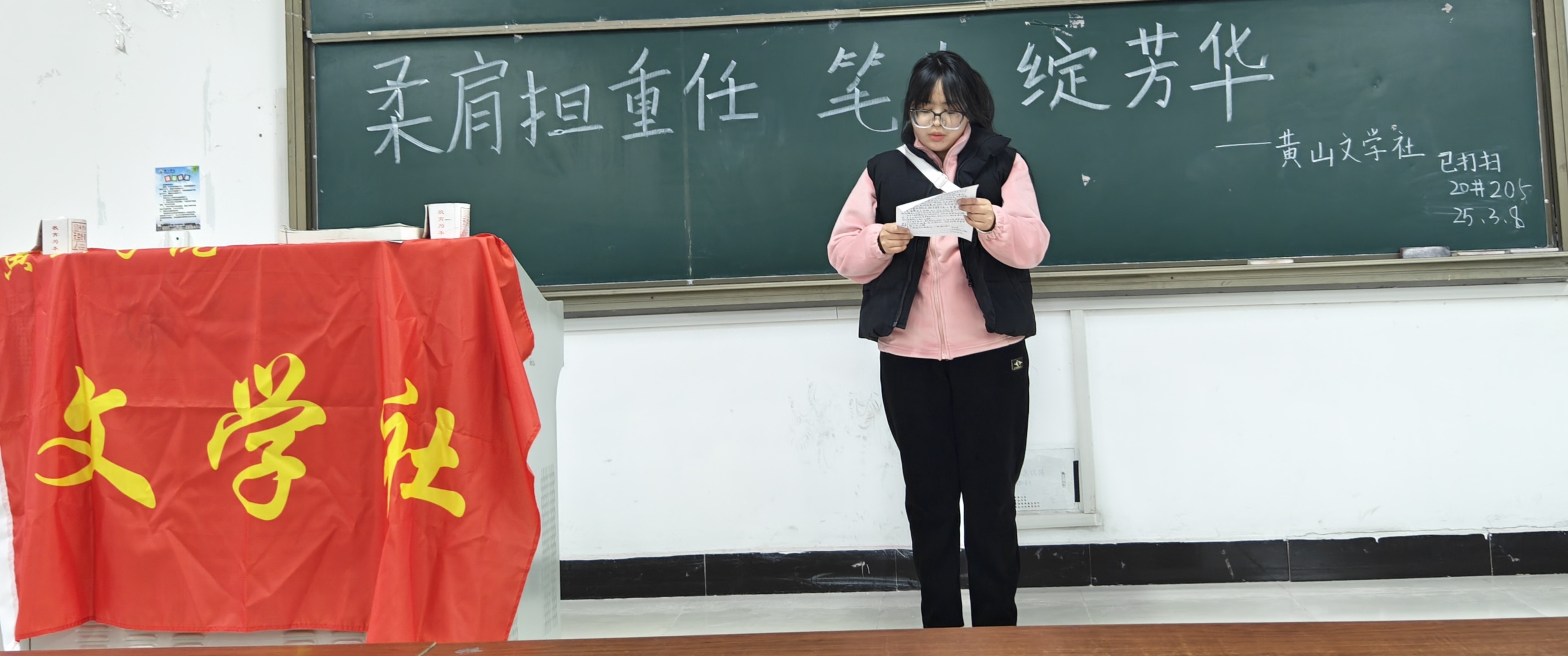 在阳光温柔洒落、万物蓬勃生长的三月,为庆祝三八妇女节的到来,黄山文学社怀着对女性的诚挚敬意,精心举办了“柔肩担重任,笔尖绽芳华”女性主题征文分享活动。此次活动在文端楼2206举行,为整个校园营造出了浓厚的人文关怀氛围。同学们踊跃参与,在文字的世界里,一同领略女性的坚韧与柔美,感悟伟大的女性力量。