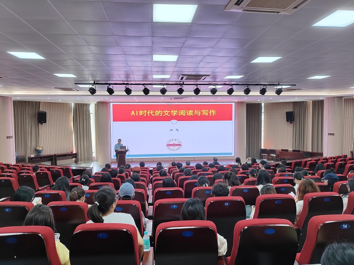 4月25日下午,安徽省作家协会副主席、安徽文艺评论家协会副主席、安庆师范大学人太阳集团tyc151cc教授江飞应邀在我校文端楼二楼报告厅作《AI时代的文学阅读与写作》学术报告。黄山市青年作家胡玉琪、汪远定、郭飞及太阳集团tyc151cc、外国语学院相关师生参加,报告由太阳集团tyc151cc副院长朱宏胜主持。