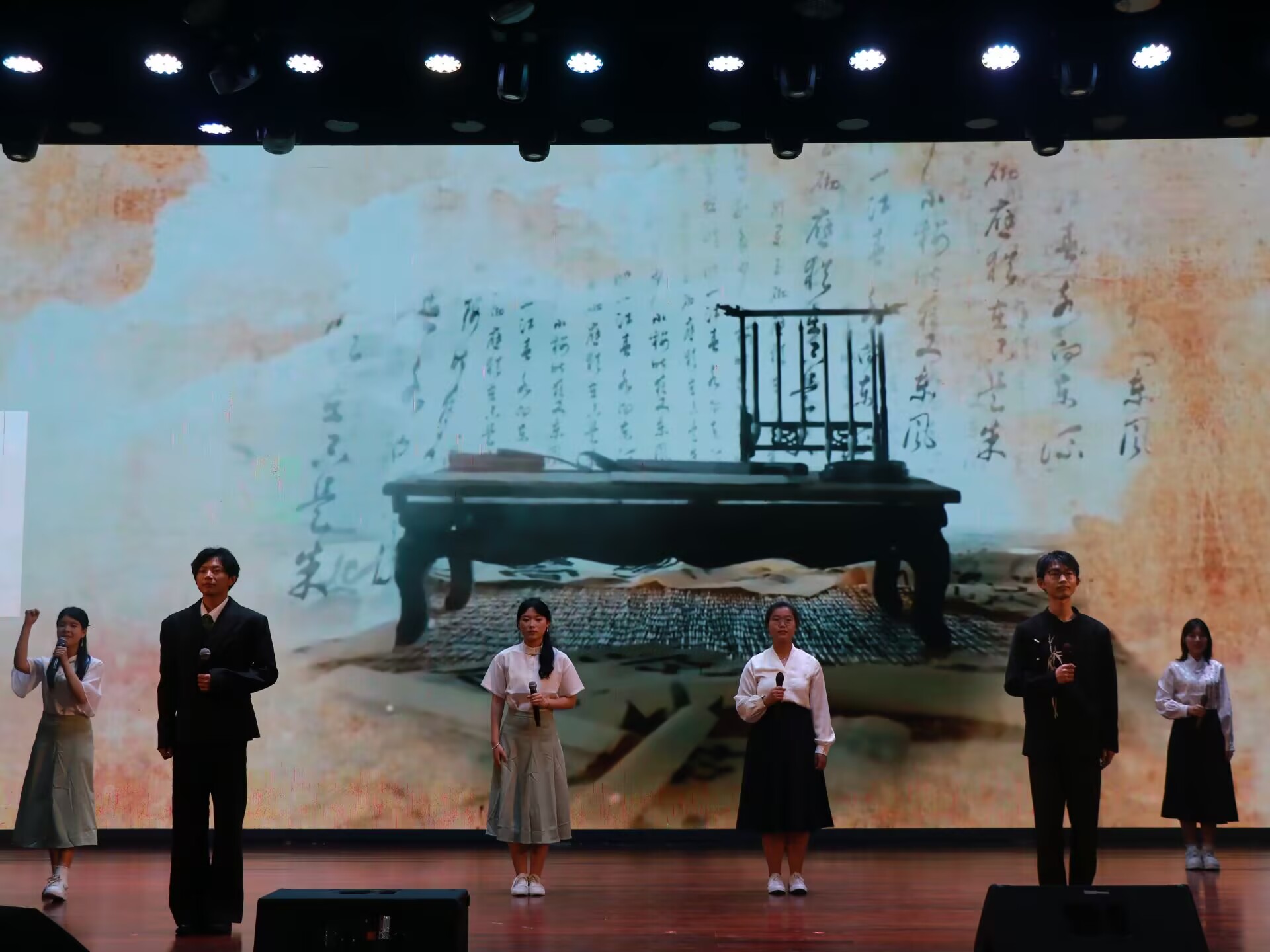 我院选手朗诵的作品《汉字长河中的书卷之光》,通过诵读经典诗文、历史故事,将中华文明的千年脉络具象化,以汉字的演变与发展过程为线,贯穿了古往今来“以书润心,与书为伴”的典型人物示例,深入了解汉字背后的文化积淀,呼应了“诵读经典需结合时代内涵”的理念,既保留传统韵味,又赋予新时代解读。勉励当代青年从历史中汲取精神力量和智慧,坚持以书润心,与书为伴,不断提升自我,携手共筑强国之梦。参赛选手语言功底扎实,舞台表达热情饱满,赢得了评委与观众们的一致好评。