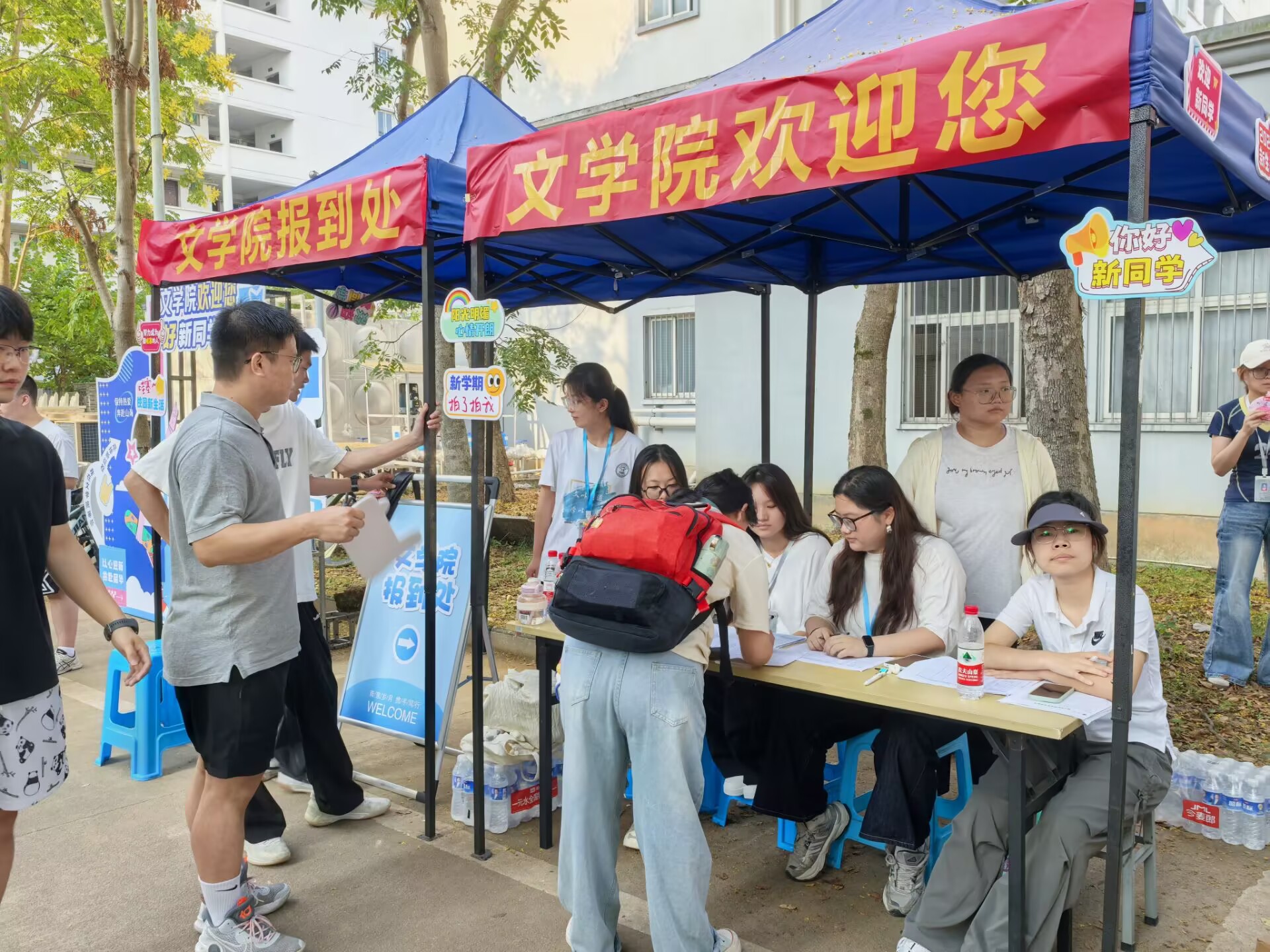 报到现场,学院精心布置了迎新点,学生干部和党员志愿者们顶着烈日,热情引导新生完成身份核验、资料提交、校园卡领取等开学流程,并协助家长搬运行李,引导新生完成寝室登记入住手续,每一项服务都细致入微、有条不紊。