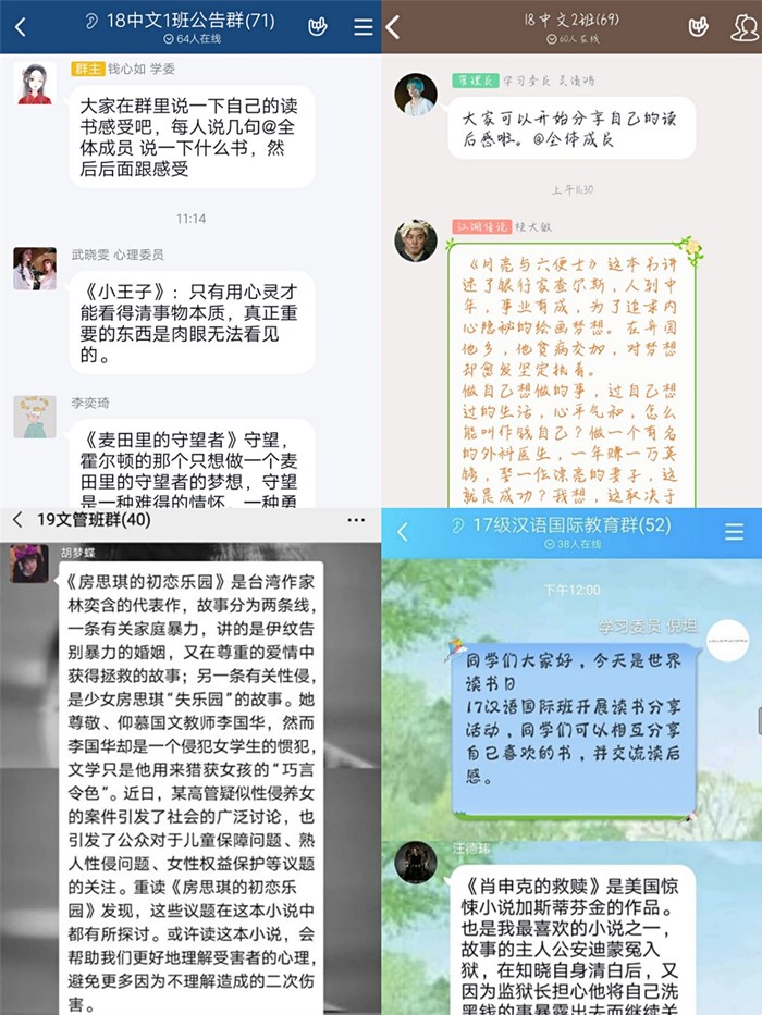 4月23日是世界读书日,该院各班级积极开展“世界读书日”线上读书分享活动。