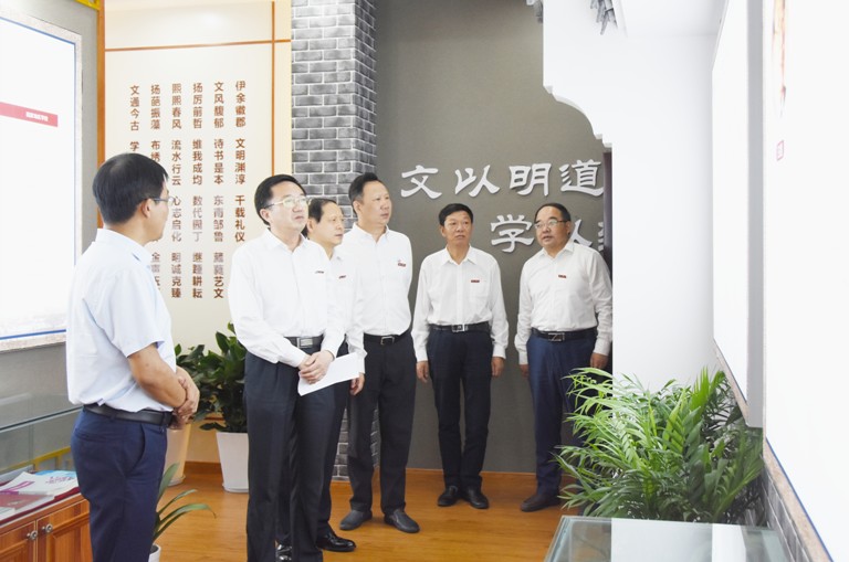 6月30日下午,校党委书记汪枫,党委副书记、院长李铁范,党委副书记胡家俊,副院长胡善风,党委委员、副院长张德学,党委委员、党委宣传部部长张赛,党委委员、教务处处长张小明一行参观考察我院办学成果展示馆。