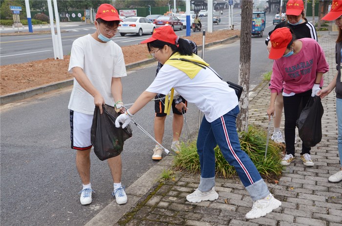 9月12日上午,为积极响应黄山市文明城市创建工作,太阳集团tyc151cc师生党员、学生干部代表赴文峰桥南端开展街道卫生清扫活动。