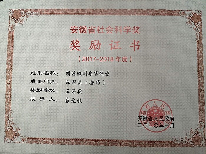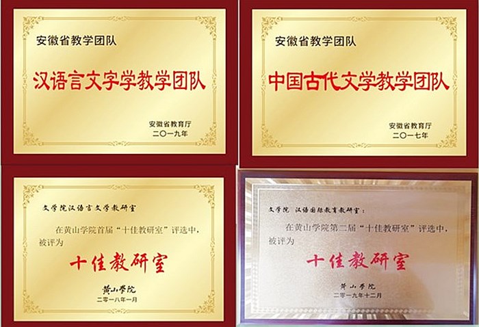 “十三五”期间,学院组建了徽州文学与文献学、徽州方言与民俗文化、徽州经学、徽州美学、黄山文化产业研究等5个科研团队。搭建了徽州方言资源保护利用共享平台。成立了安徽大学徽学研究中心分中心、安徽师范大学诗学研究中心分中心。教师主持教育部人文社科一般项目2项,教育部语保工程项目6项,省规划办项目6项,省高校人文社科重点项目10项,省厅人文社科一般项目3项,省人文社科基地重点项目3项,省政府创新项目1项,合计科研经费110.3万元。教师发表论文133篇(其中CSSCI论文19篇),出版专著11部。教师获社科三等奖1项、黄山市社科奖4项。教师申报项目中,徽文化研究项目占比90%,研究领域涉及徽州方言、徽州文学、徽州民俗文化、徽州礼仪文化等,其中的许多成果已转化为校内教学资源,教学与科研相互促进的良性循环已经初步形成。