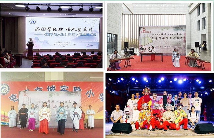 “十三五”期间,学院高举传承中华优秀传统文化大旗,在对中华优秀传统文化创造性转化和创新性发展过程中砥砺前行,取得了可喜成绩。在上级领导和其他部门院系的支持下,在全省高校内率先开设弘扬中华优秀文化、践行社会主义核心价值观的公共必修课程《国学与人生》。坚持举办国学活动月活动,通过书画大赛、经典诗文朗诵、辩论赛、汉服展示、成人礼等系列活动,让学生亲身感受中华文化的博大,增强文化自信。同时把国学宣传与教育向社会延伸,与黄山市教育局、黄山市长干小学、屯溪东城实验小学等单位签订协议,开展了国学进小学活动,引起了社会关注。新建太阳集团tyc151cc办学成果展示厅、太阳集团tyc151cc图书资料中心各一个,有力支撑了学院文化建设。