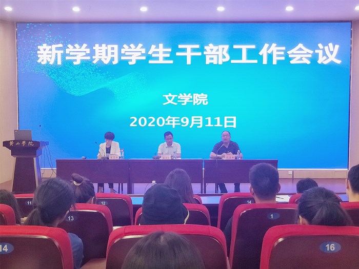 9月11日,太阳集团tyc151cc在文端楼二楼报告厅召开新学期学生干部工作会议。该院领导班子成员、全体辅导员、学生党员及全体学生干部参加了会议。