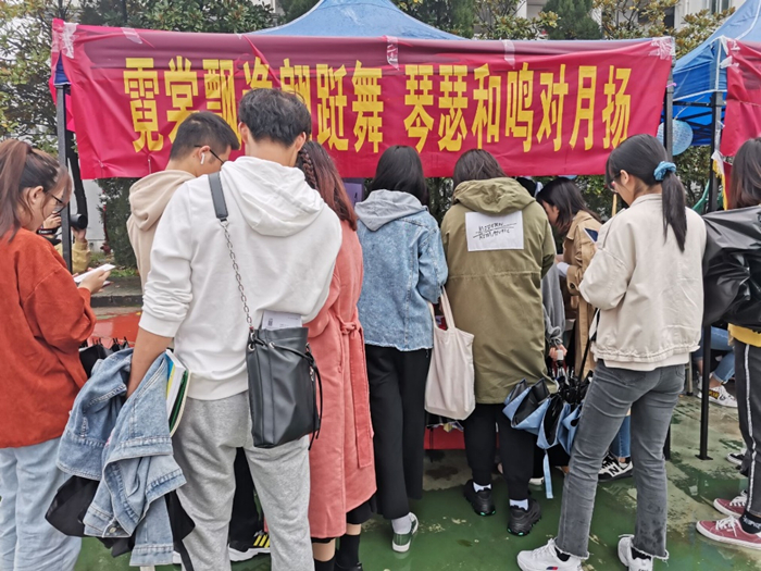 活动前期理事会成员搜集出形容人、花、季节、节日等的诗词,将其誊写在书签上,并在活动当天提前到达场地,对场地进行布置。活动中由社团工作人员邀请感兴趣的同学参加活动,带领着同学们随意抽取一张书签,猜出诗词所形容的人名、花名、颜色、季节等,猜完之后在便利贴上写下自己对大学四年或是将来人生的憧憬与目标,投放入准备好的“心愿灯”中。