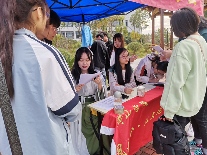 重阳节是中国传统的民间节日,古人认为九九重阳是一个代表吉祥的日子。古时在这一天里有着登高祈愿、秋游赏菊、佩戴茱萸、拜神祭祖等习俗。在我国传统文化中九是久远长久的谐音,所以这一天也被赋予了天长地久、生命长久的寓意。借此契机,汉文化阁社团举办“重阳辞青会”活动,表达同学们对于美好生活的期盼。