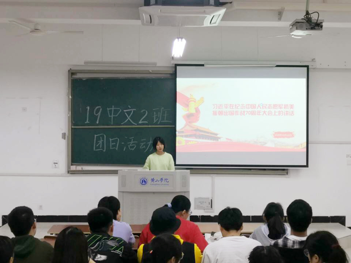 为纪念中国人民志愿军抗美援朝出国作战70周年,10月29日晚,19中文2班于文端楼2208教室开展了主题团日活动,学习和纪念中国人民志愿军抗美援朝出国作战70周年。