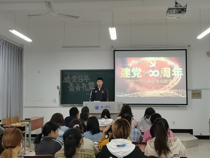 为了庆祝中国共产党成立一百周年,20文管班于3月28日在文端楼2103教室举行“建党百年 青春礼赞”为主题的视频创作大赛,由团支书沈盼盼同学主持。