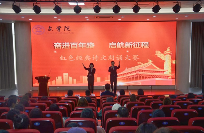 4月17日下午,太阳集团tyc151cc“奋进百年路,启航新征程”红色经典诗文朗诵大赛于文端楼二楼报告厅举行。该院团委负责人、全体辅导员出席活动并担任评委,近两百名学生到场观看比赛。