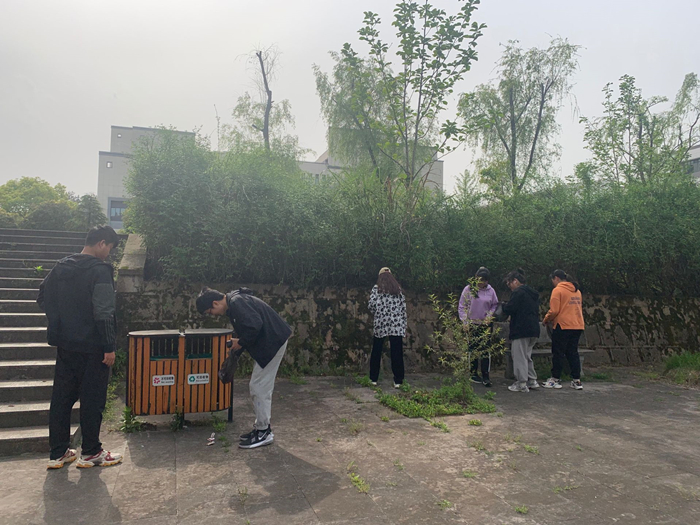 20中文1班、2班同学们带着垃圾袋到学校听松湖周边拾捡垃圾,为学校环境美化做出自己的贡献。