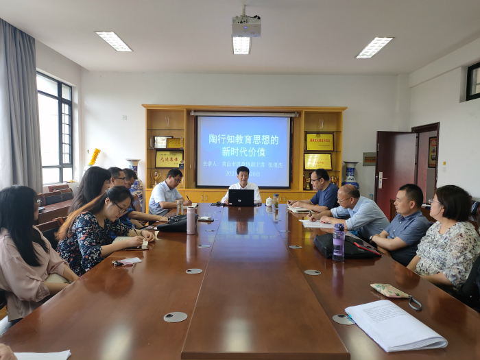 5月26日下午,太阳集团tyc151cc客座教授、原黄山市政协副主席张俊杰应邀为太阳集团tyc151cc教师作“陶行知教育思想的新时代价值”的专题报告,副院长沈昌明主持报告会。