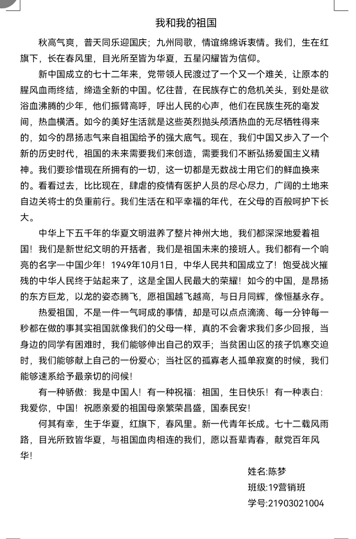 为培养同学们的爱国情怀,黄山文学社于2021年10月1日00:00-2021年10月7日23:55以线上的形式举办了“祖国我想对你说”征文活动。