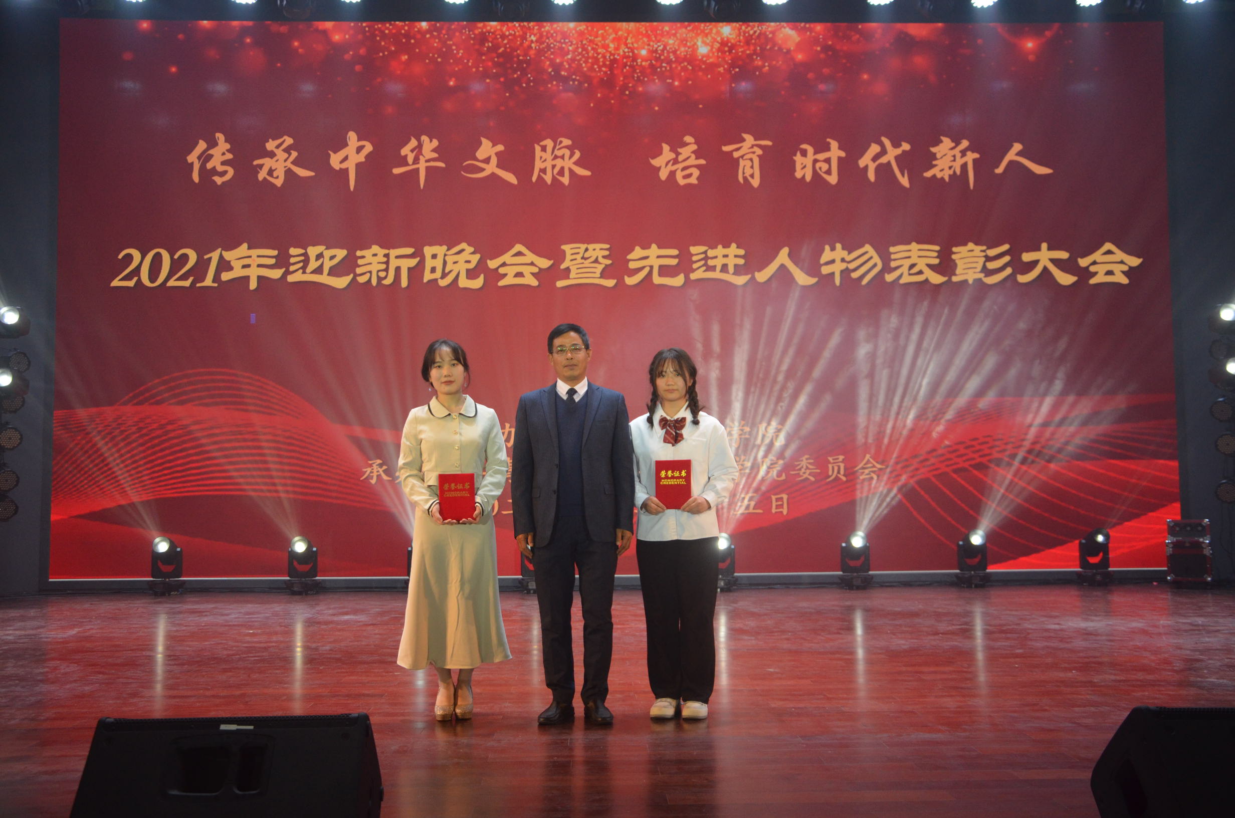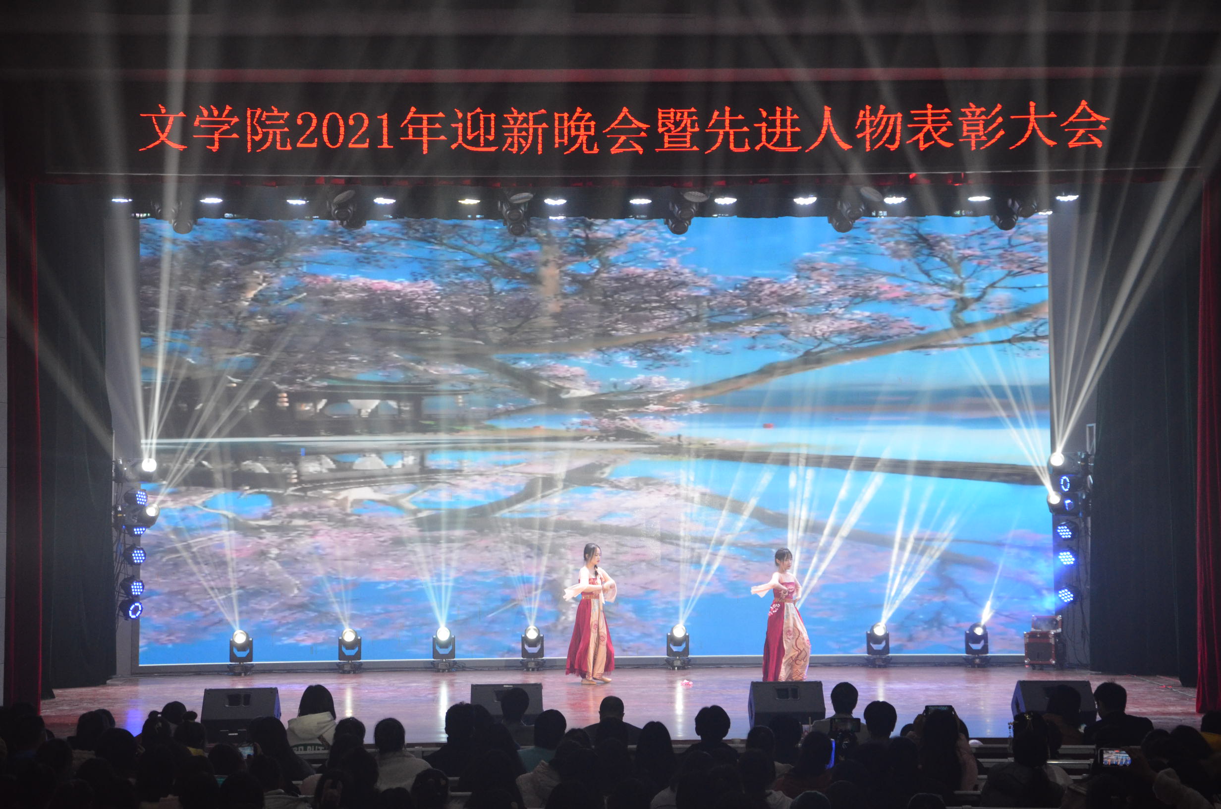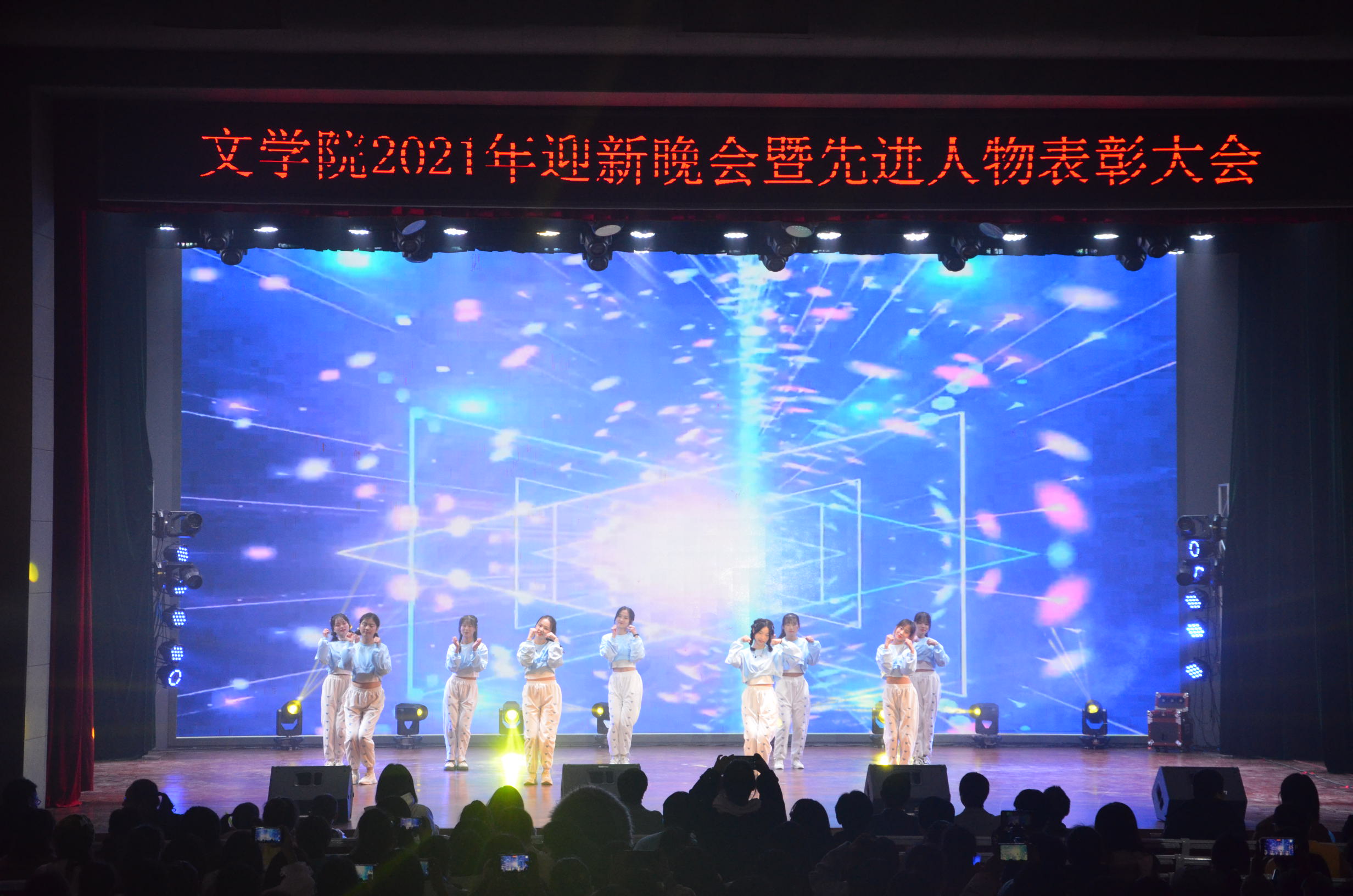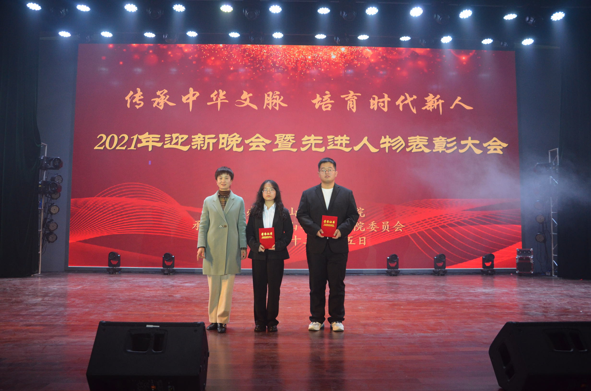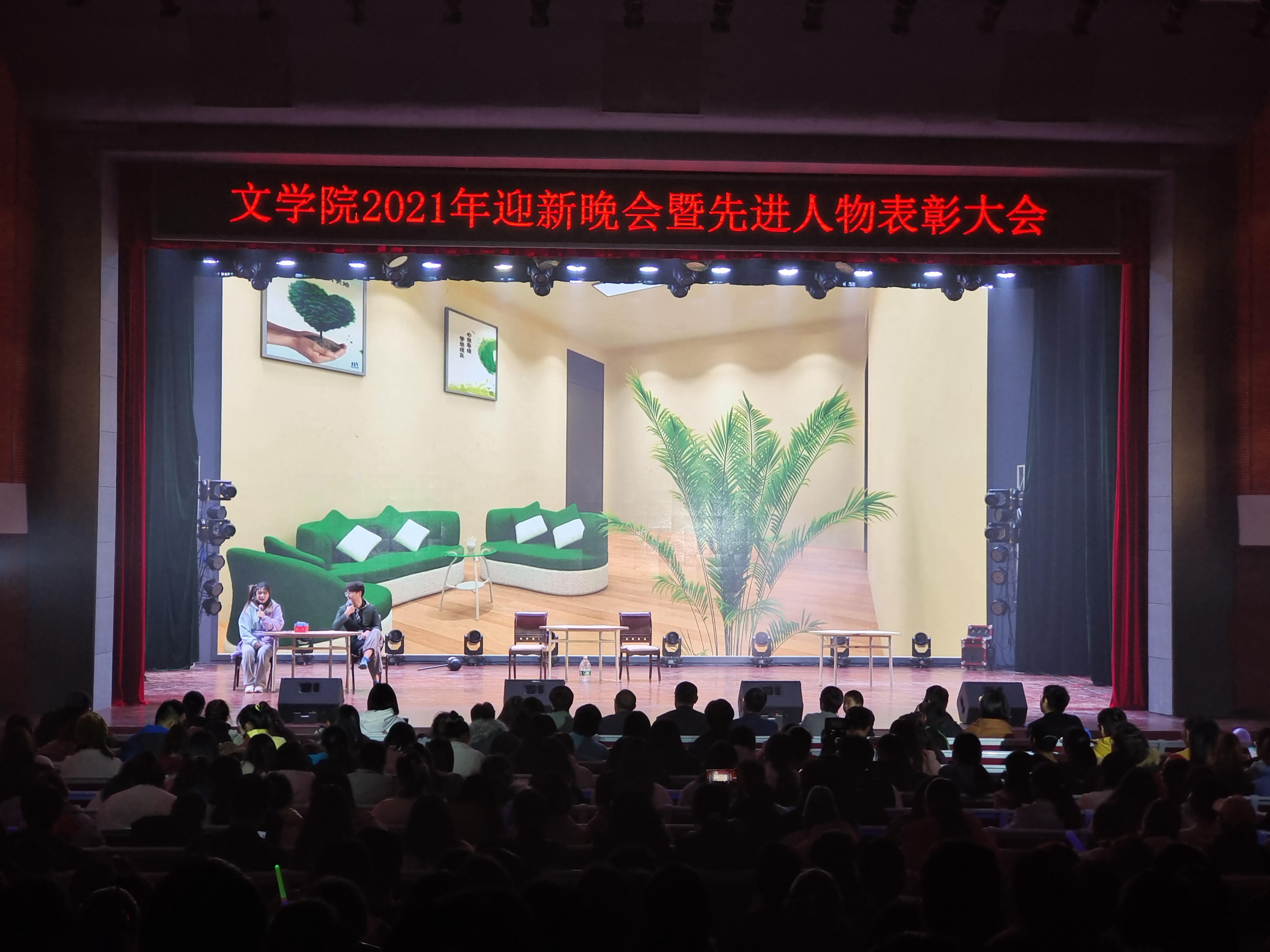 12月15日晚,太阳集团tyc151cc2021年迎新晚会暨先进人物表彰大会于率水校区大学生活动中心隆重举行。校团委书记邱慧、副书记叶继发、该院领导班子、各二级学院团委老师、学生会主席、太阳集团tyc151cc全体师生共1000余人参加了此次活动。