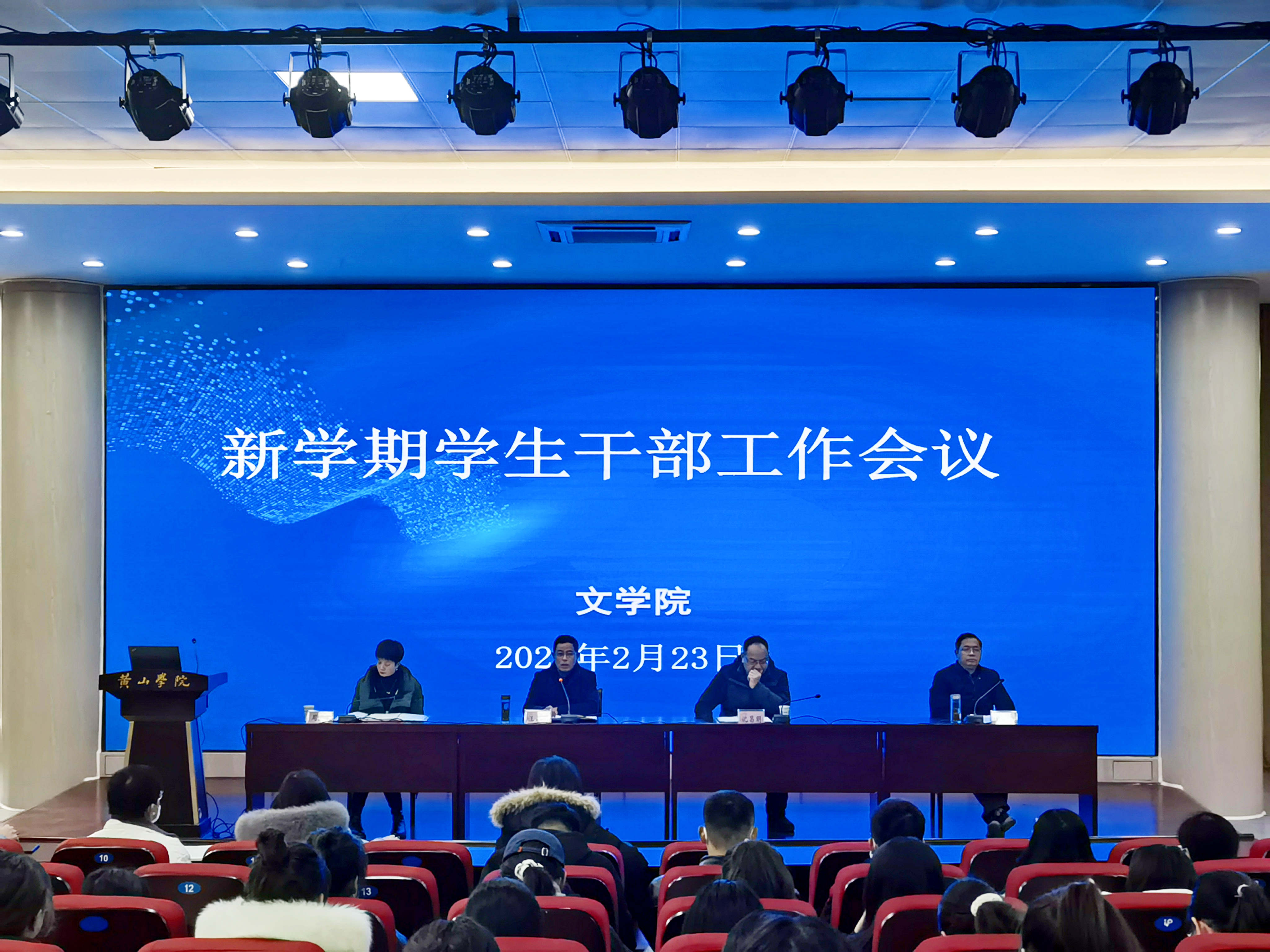 2月23日下午,太阳集团tyc151cc在文端楼二楼报告厅召开新学期学生干部工作会议。该院领导班子成员、全体辅导员、学生干部参加此次会议。会议由院党总支副书记周志荣主持。
