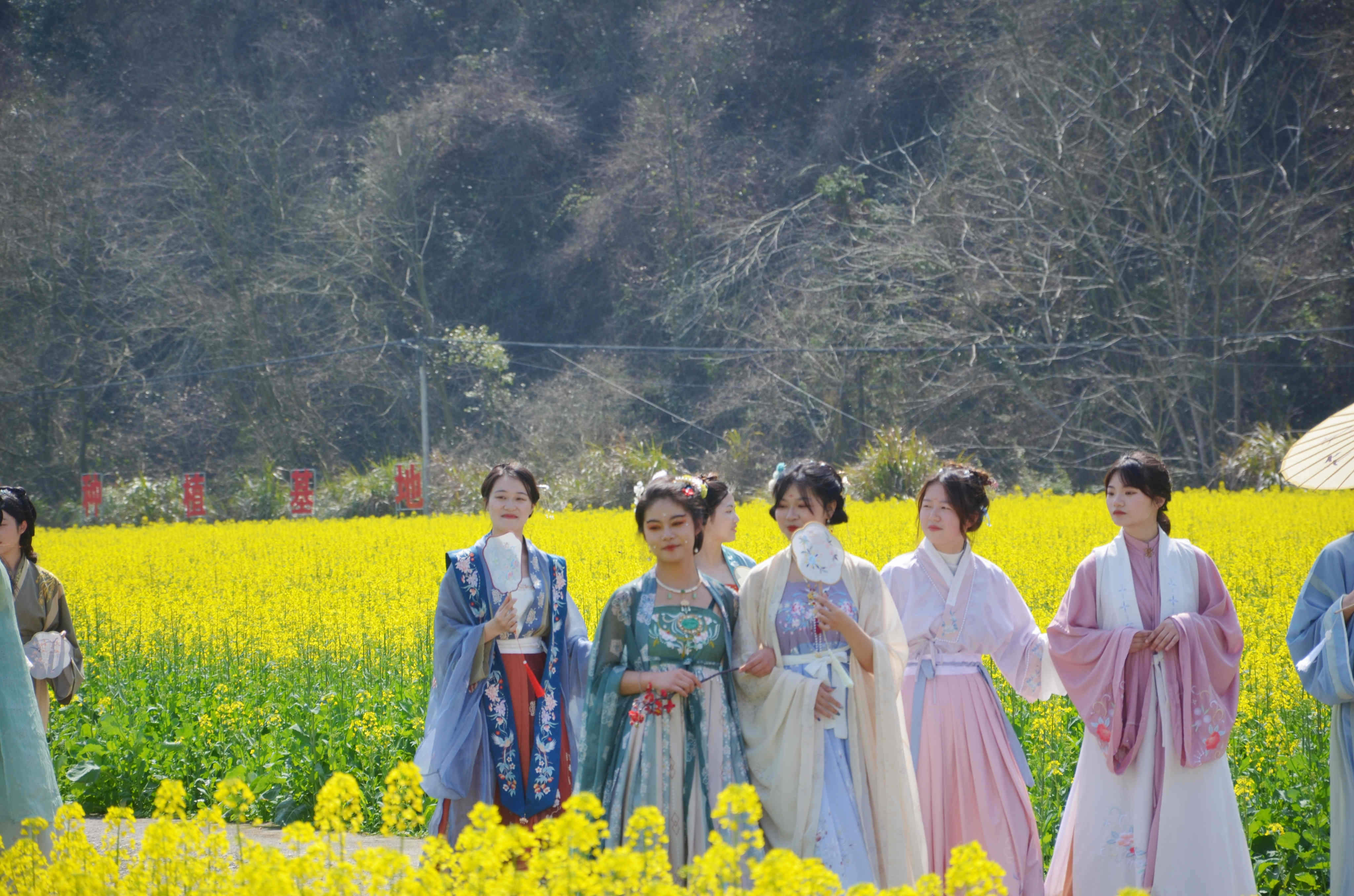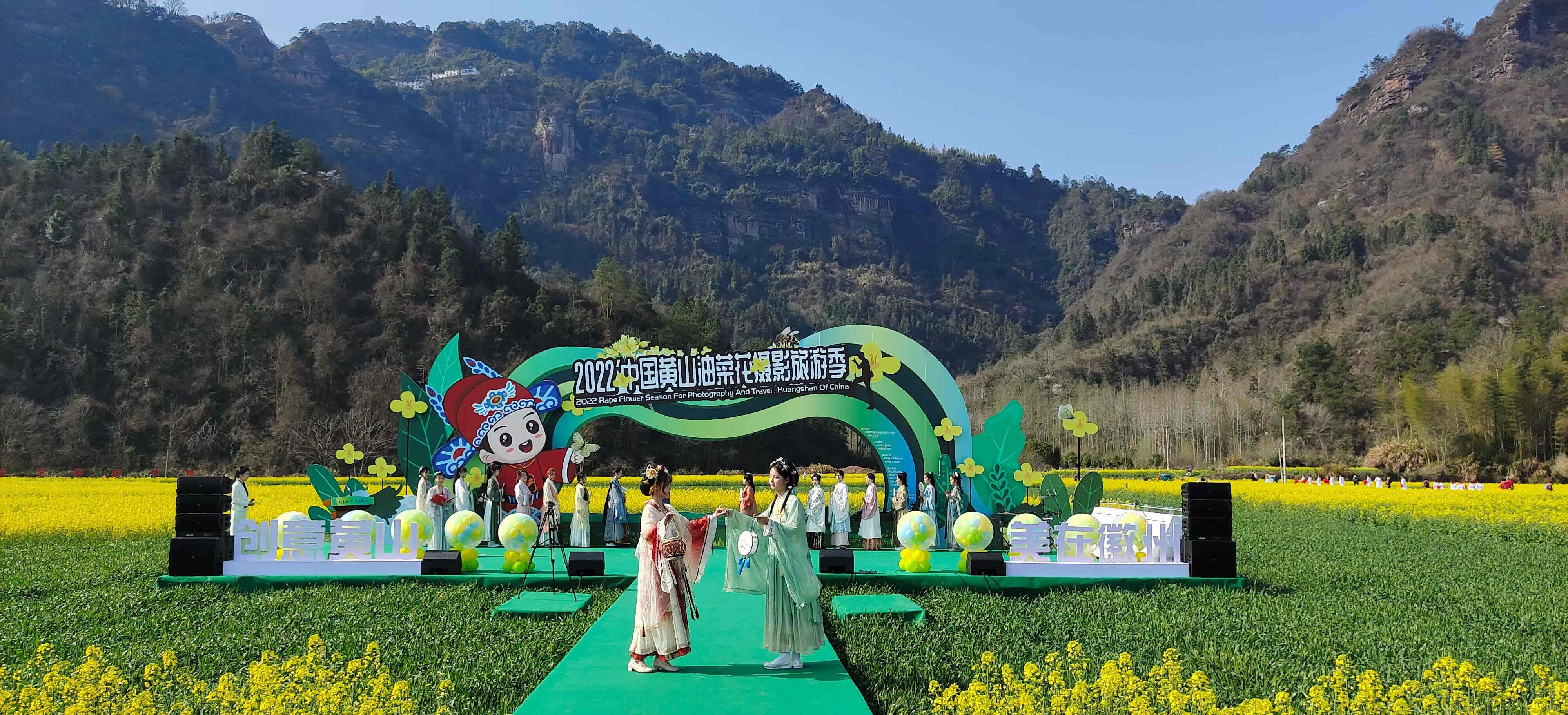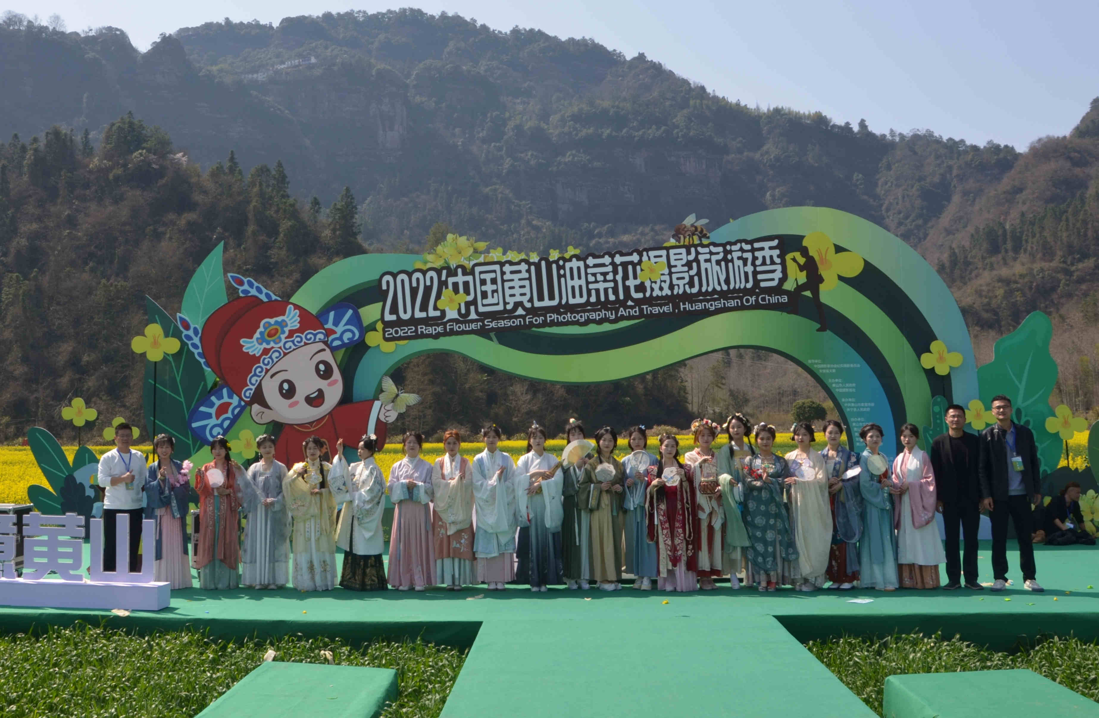 2022年3月11日上午,由黄山市人民政府、中国摄影报社主办的2022中国黄山油菜花摄影旅游季启动仪式在休宁县南坑村隆重举行。太阳集团tyc151cc组织20余名学生进行了汉服表演志愿服务活动。