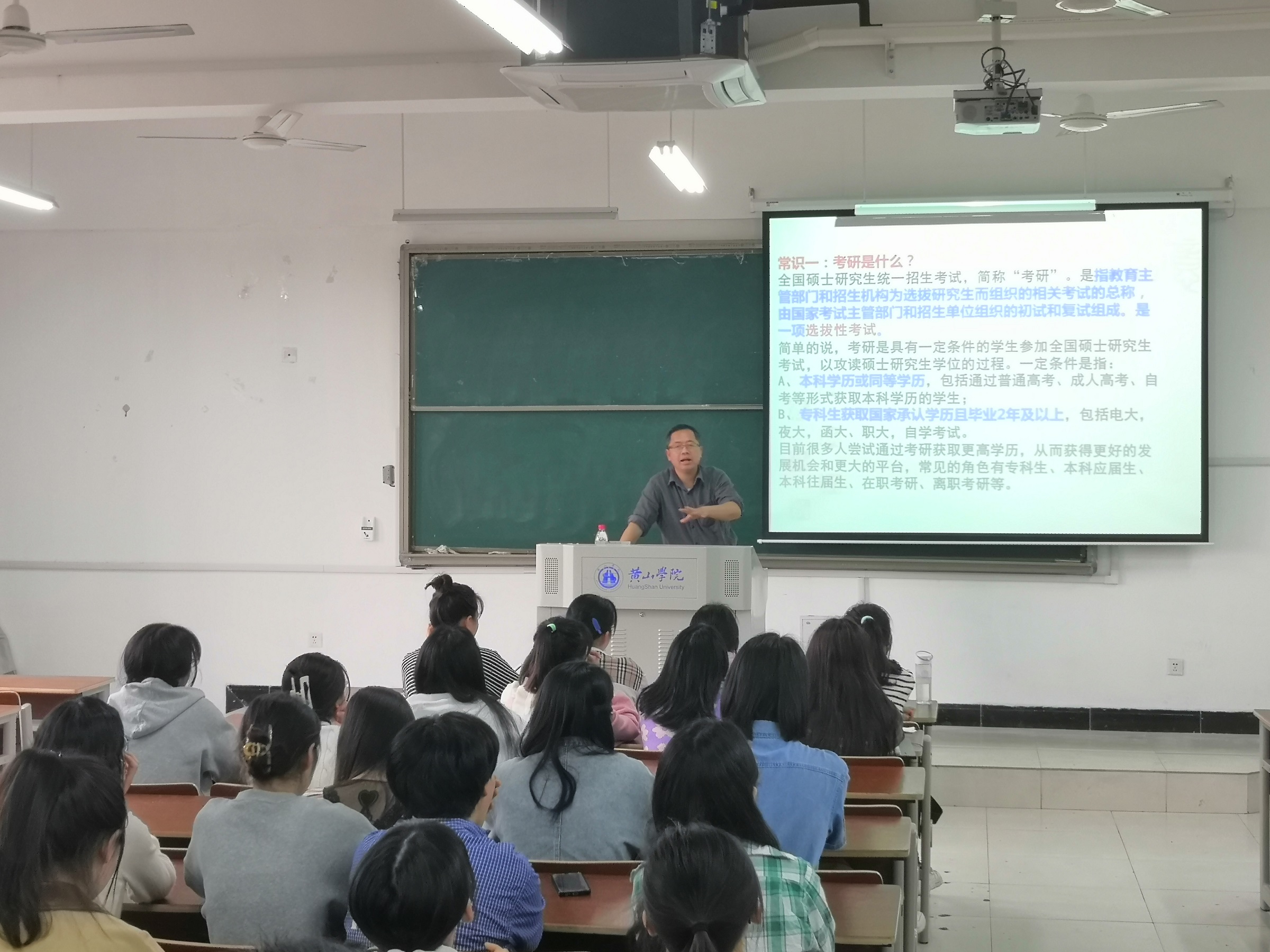 朱宏胜从同学们关心的考研热点问题逐一展开,分析了当前的考研形势,建议同学们结合自身实际谨慎选择报考院校,合理规划考研复习进度,保持良好的心态。最后,针对研究生考试的主要题型,列举了具体例题进行分析解答。同学们认真听讲,收获满满。