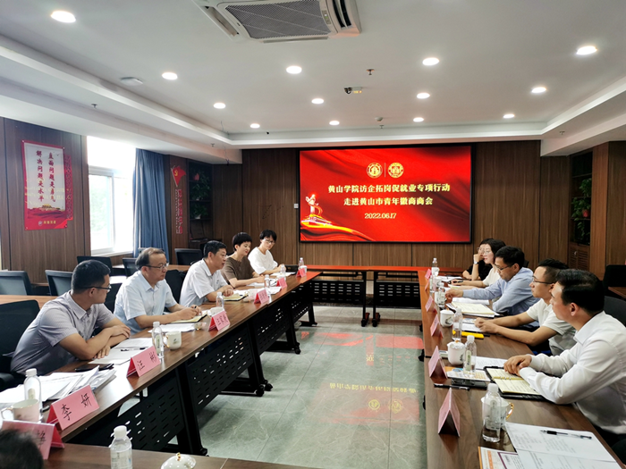 程景梁介绍了黄山市青年徽商商会发展历程,表示商会企业发展平台好、前景佳,希望以此次会谈为契机,进一步深化合作,建立良好的互动沟通机制,畅通稳定有效的毕业生推荐渠道,有效地为黄山当地企业注入新鲜血液。