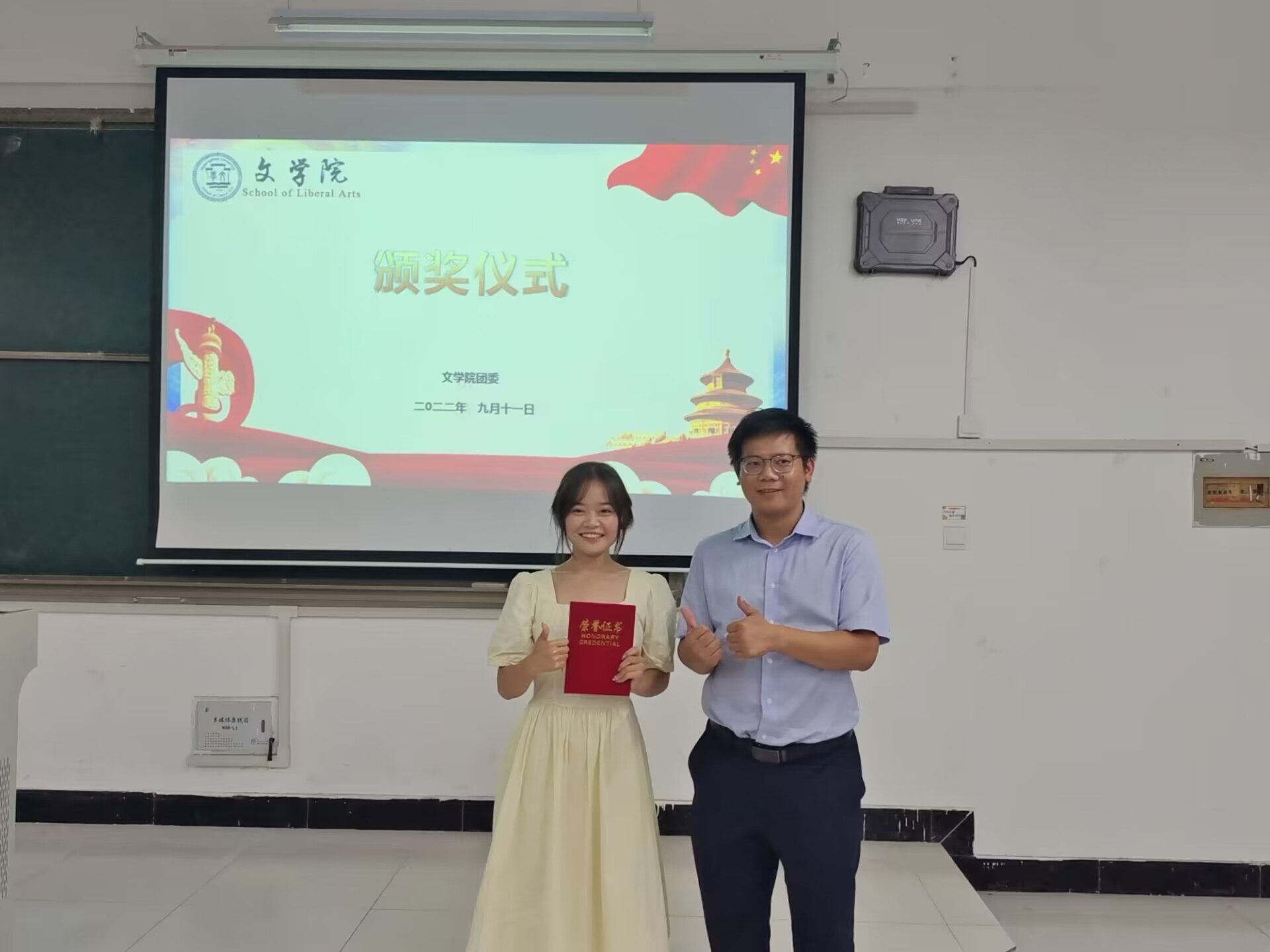 9月11日晚,该院于文端楼2405教室举办了“喜迎二十大,永远跟党走,奋进新征程”军训情主题演讲比赛。该院100余名新生参加并观看了此次活动,辅导员王星勇老师到场为获奖选手颁奖。