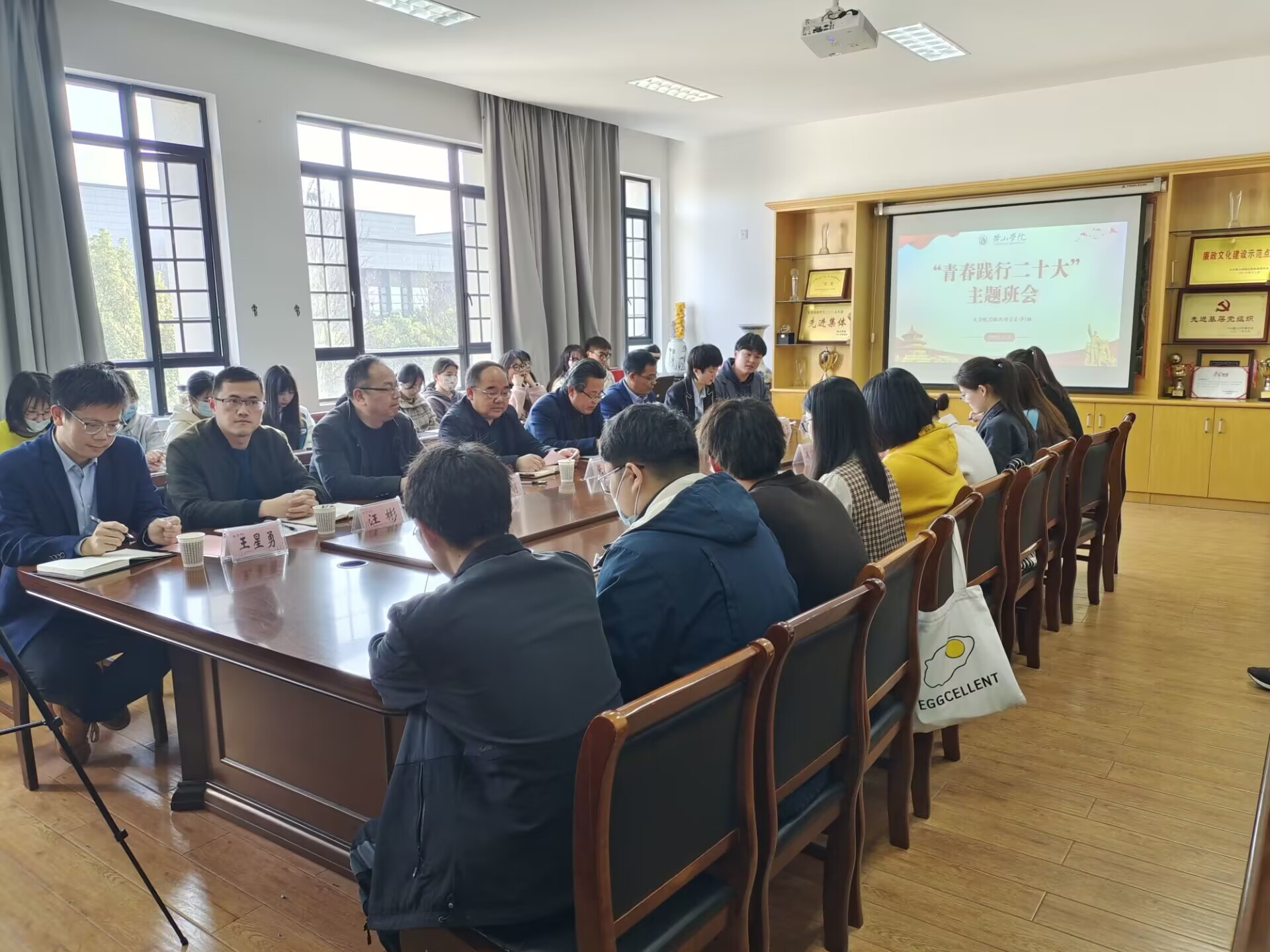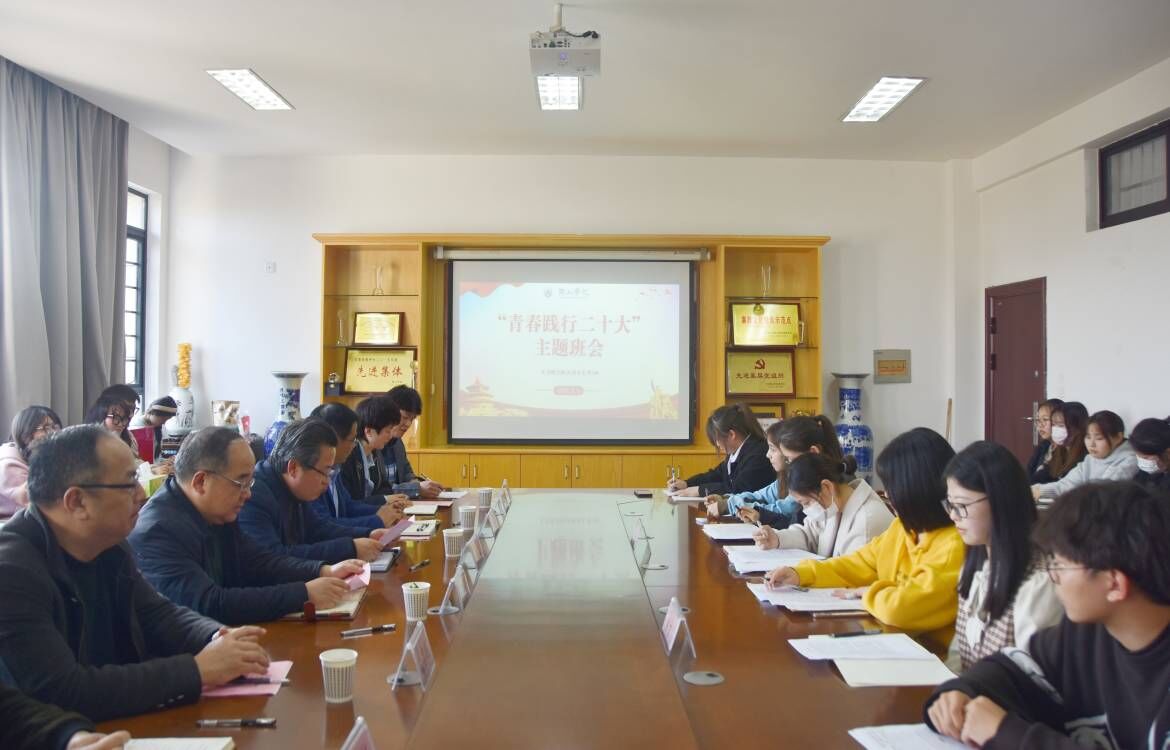 3月9日下午,太阳集团tyc151cc2020级汉语言文学1班在该院会议室举办“青春践行二十大”主题班会。校党委委员、副院长张小明,马克思主义学院党总支书记刘春安、学生处副处长汪彬,太阳集团tyc151cc领导班子成员、团委负责人、专职辅导员等参加了主题班会。主题班会由该班班长王远康主持。