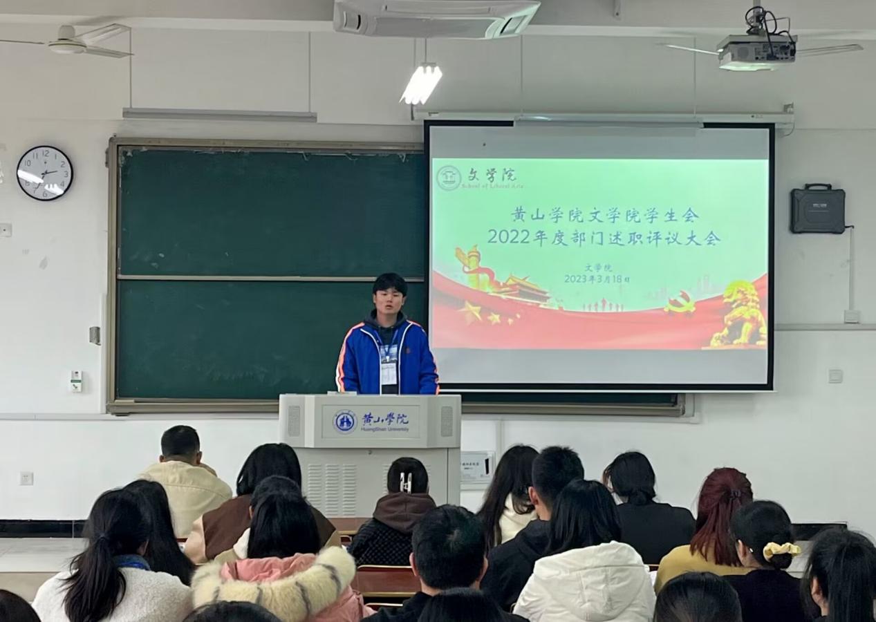 为进一步加强学生干部队伍建设,充分发挥学生干部的积极性和主动性,太阳集团tyc151cc团委于3月18日在文端楼2508教室开展学生会2022年度述职评议大会,院团委负责人王星勇老师出席。