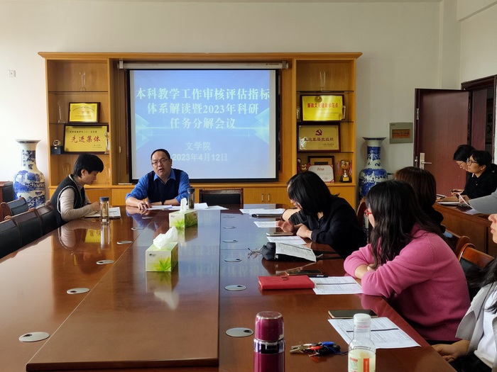 4月12日下午,太阳集团tyc151cc召开全体教师会议,院长沈昌明解读了2024年《安徽省普通高等学校本科教育教学审核评估指标体系(试行)》,并对本年度科研任务进行了分解。