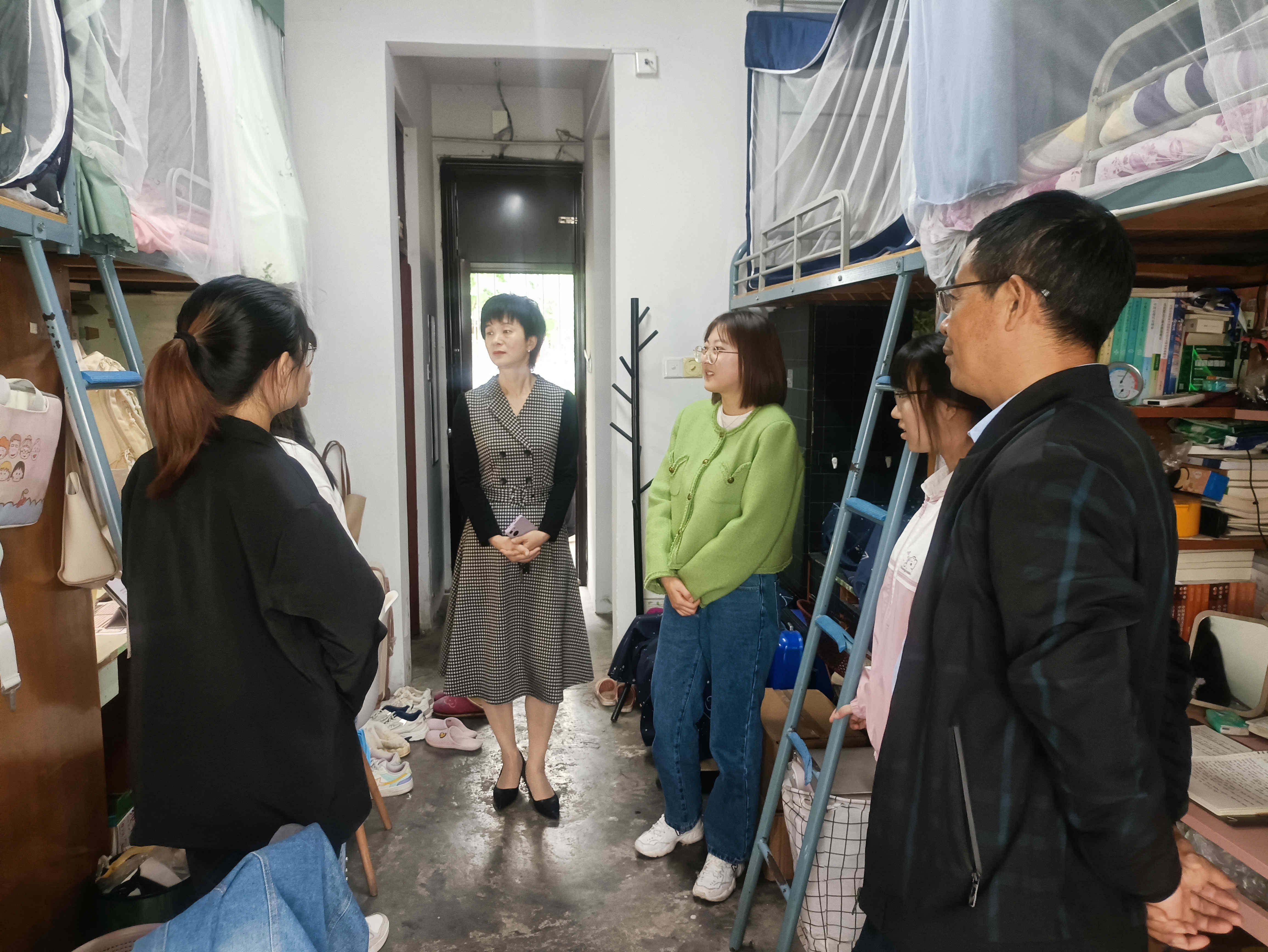 5月12日下午,太阳集团tyc151cc党总支书记汪方学、副书记周志荣带领辅导员走访学生宿舍开展走访调研工作。