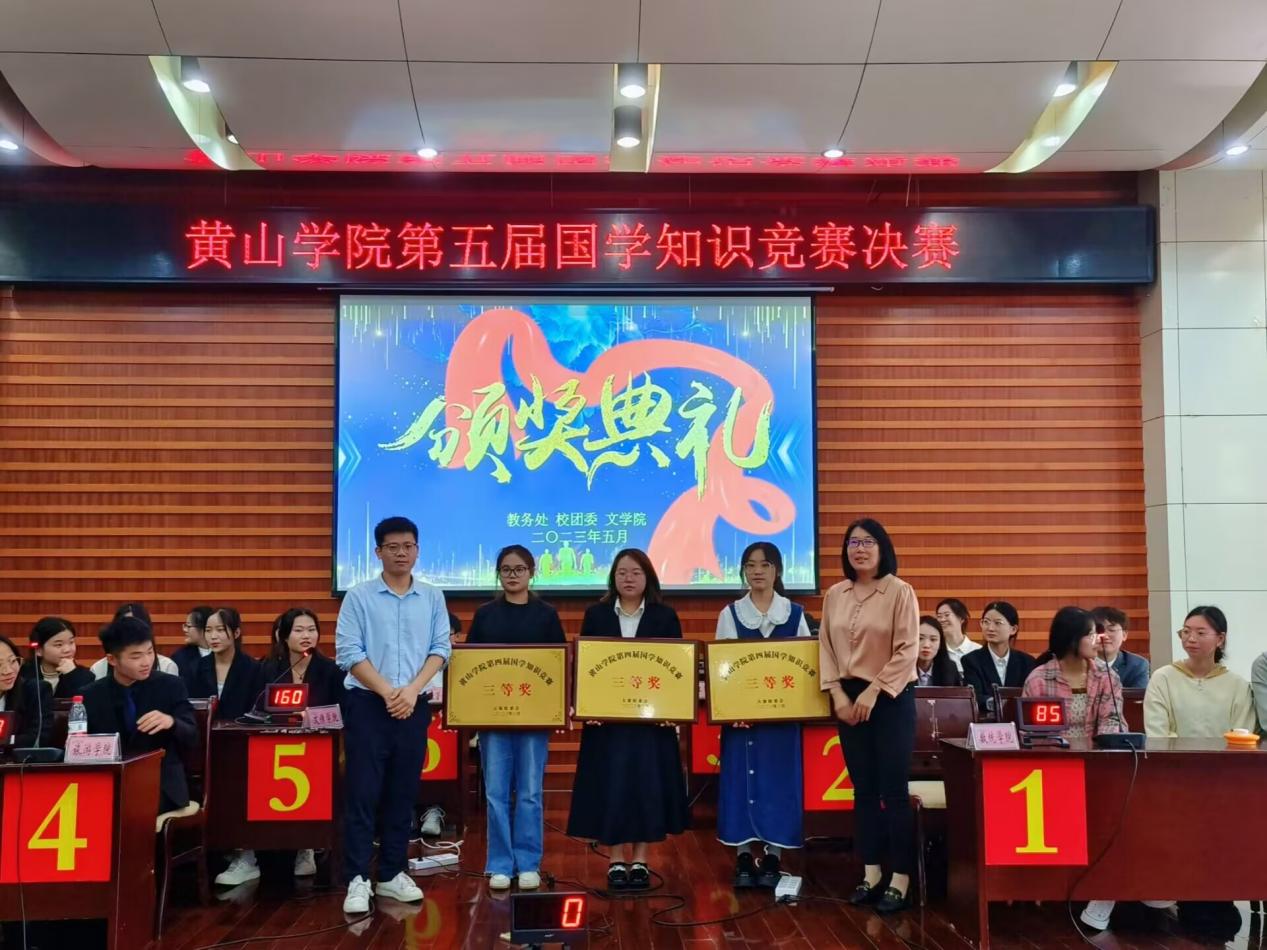 经过预选赛的激烈角逐,有6支代表队晋级决赛。决赛分“虚席以待,眼疾手快,风险投资”三个环节,竞赛题目经过重重审核、内容涉及先秦至民国时期的国学经典、诗词名篇、风俗民情、历史文化等多个领域。比赛过程中,各支队伍凭借扎实的知识和优良的综合素质,为观众呈现出一场精彩纷呈的比赛,“眼疾手快”抢答环节更是将本场比赛推向高潮。最终,文化与传播学院代表队荣获集体一等奖,经济管理学院和旅游学院代表队分别获得集体二等奖,教育科学学院、数学与统计学院和化学化工学院代表队分别获得集体三等奖。