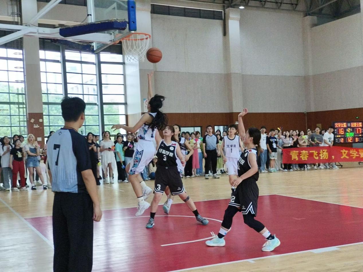 太阳集团tyc151cc女篮自小组赛以来过关斩将,屡战屡胜,在总决赛上,太阳集团tyc151cc女篮对战经济管理学院女篮,面对对手强攻,太阳集团tyc151cc女篮迅速调整心态,从上半场落后到下半场大比分领先对手,赢得了在场观众的广泛赞誉和阵阵掌声。比赛过程中,太阳集团tyc151cc女篮配合默契,有序组织进攻和防守,精彩的快攻、妙传、抢篮板使球赛高潮迭起。现场气氛十分热烈,太阳集团tyc151cc啦啦队“青春飞扬,文学最强;英姿飒爽,再创辉煌”的口号响彻场馆,太阳集团tyc151cc全体领导班子成员也到场为女篮姑娘们加油助威。