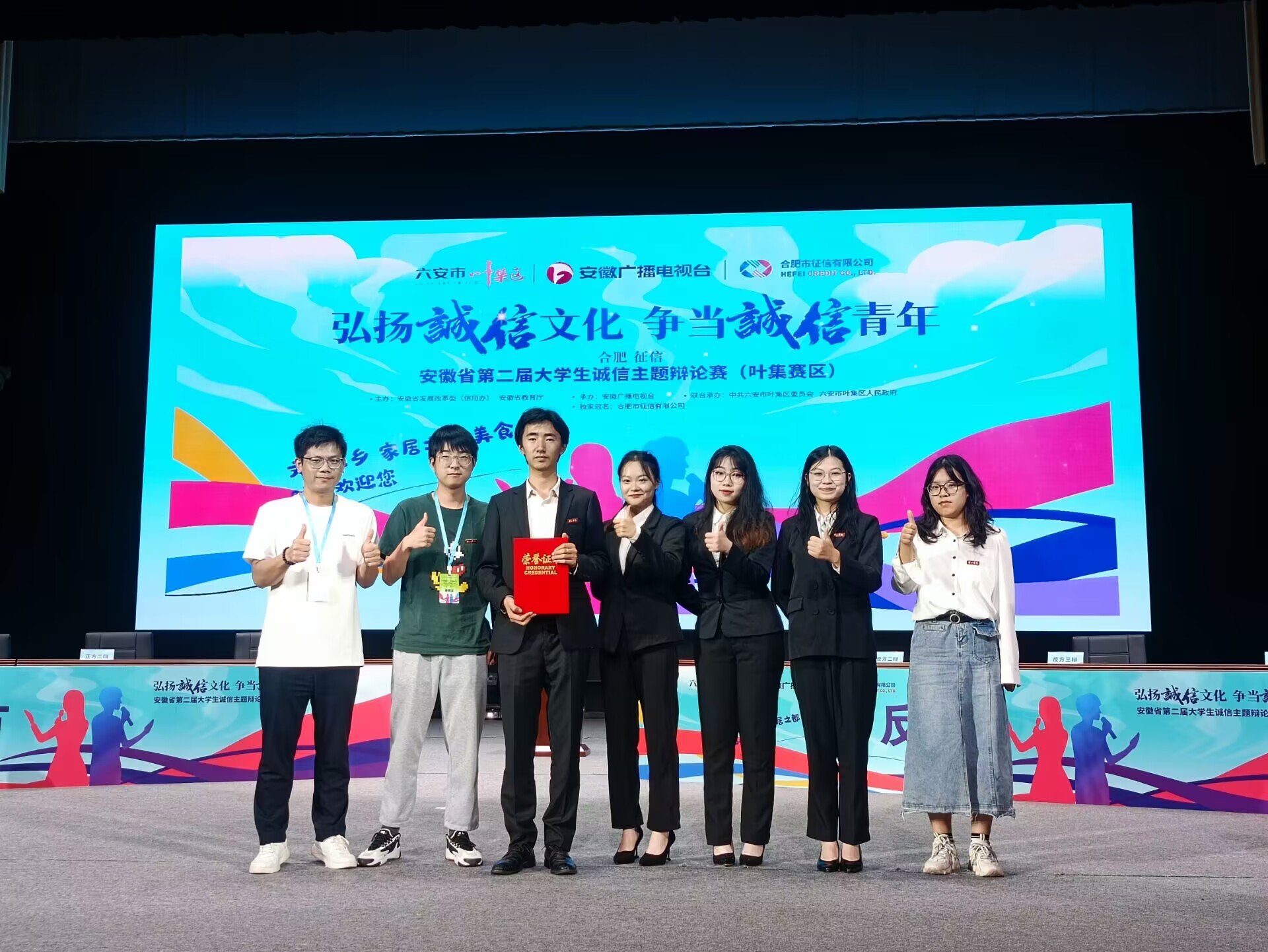 据悉,本次大赛共有合肥和六安两个赛区50多所高校报名参赛,12支高校代表队成功入围全省总决赛。下一步,我院将继续围绕“弘扬诚信文化、争当诚信青年”活动主题,一方面为省决赛备赛训练,力争在9月份全省总决赛中再创佳绩,另一方面持续加强校园诚信文化宣传,进一步推动学校大学生思想政治教育持续健康发展。