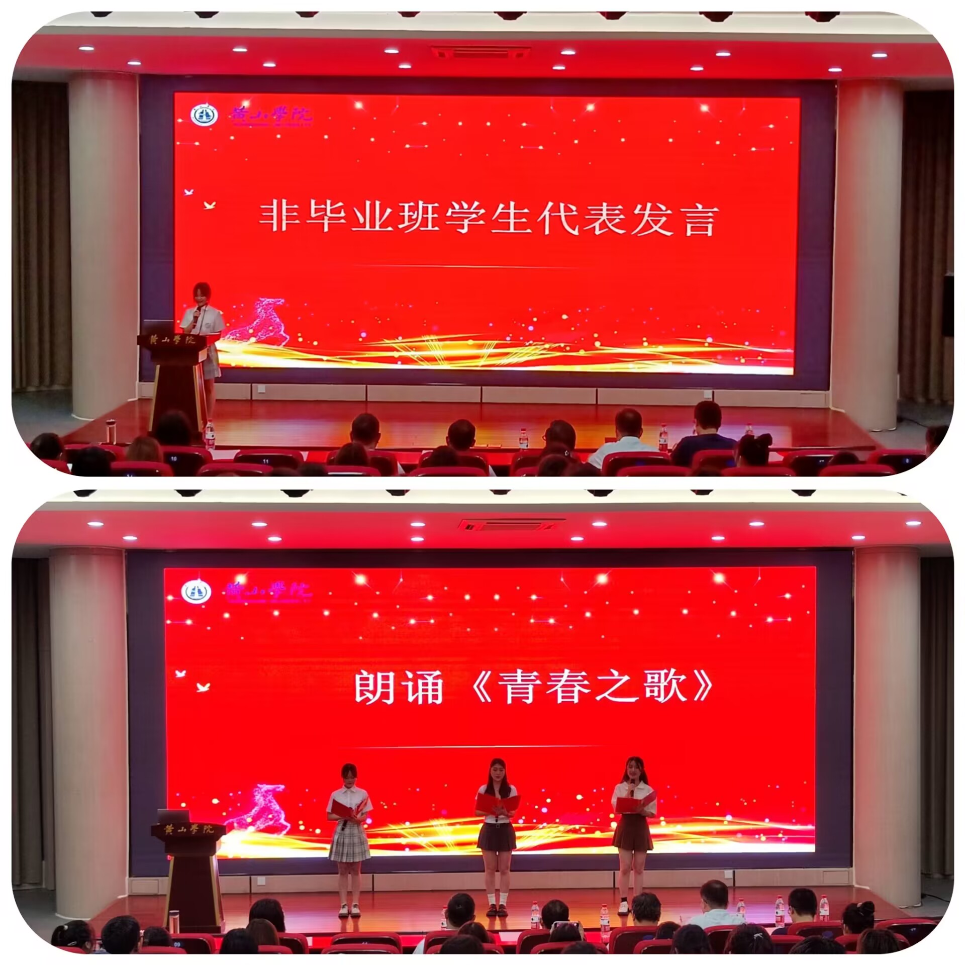 非毕业生代表22级中文1班朱雅琪上台发言。她向即将离开母校,步入社会的学姐学长表示由衷的祝贺,同时也向为学生的成长倾注了无数心血的老师表达深深的敬意,并祝愿学长学姐们都能在自己热爱的领域闪闪发光,在今后的日子里一帆风顺、前程似锦。