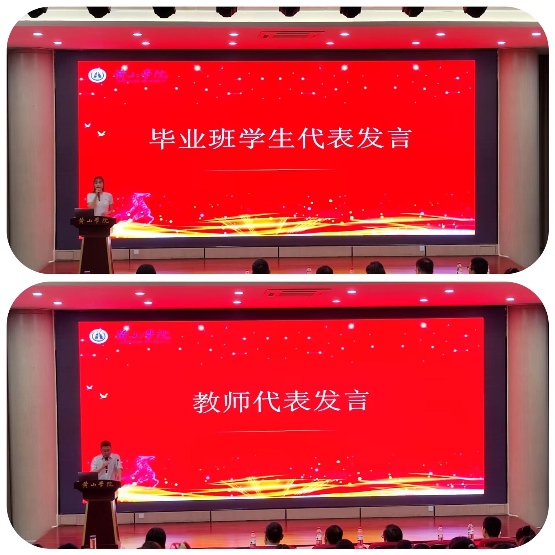 教师代表周涛代表所有全体教师对毕业生们表示祝贺,并提出了四点希望:一、希望毕业生们树立终生学习的理念,养成良好的读书习惯,做一个有学识、有品位的人。二、要有责任和担当意识。三、要有一颗感恩的心,做一个有“良心”的人。四、希望同学们志存高远,勇于追梦,敢于圆梦。
