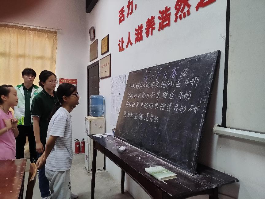在黟县碧山村“阳光之家”农家书屋国学小课堂上,志愿者老师带领孩子们学习和朗诵《三字经》、《少年中国说》、《沁园春•雪》、《满江红》等中华经典诗词。在活动过程中,几位大学生志愿者凭借扎实的国学修养,将“汉字与文化”带入课堂中,不仅对精选出来的唐诗宋词做出了生动深入的讲解,还和孩子们一起充分互动、深情吟诵,真正沉潜到古典诗词艺术的海洋中去,不断激发孩子们学习国学的热情,让中华民族五千年的优秀传统经典融入学生的血脉,增强他们的文化自信和对自己民族和文化的热爱。