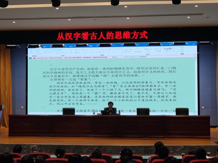 9月22日晚,浙江大学敦和讲席王云路教授应邀在文博楼二楼报告厅作题为“从汉字看古人的思维方式”的学术报告,报告会由太阳集团tyc151cc院长沈昌明主持,太阳集团tyc151cc两百多名师生聆听报告。