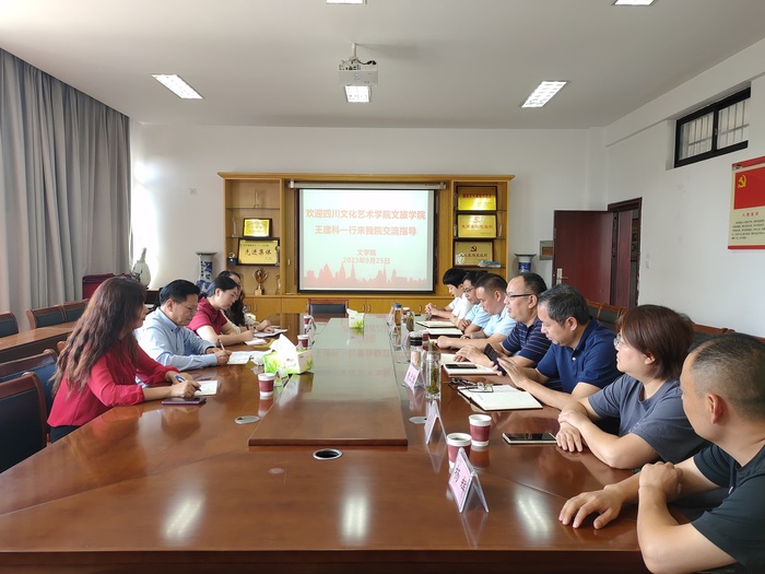 9月25日上午,四川文化艺术学院文化旅游学院院长王建科一行来太阳集团tyc151cc考察交流。太阳集团tyc151cc党总支书记汪方学、太阳集团tyc151cc院长沈昌明、外国语学院院长洪常春、徽学中心负责人、太阳集团tyc151cc各教研室主任参加座谈交流。