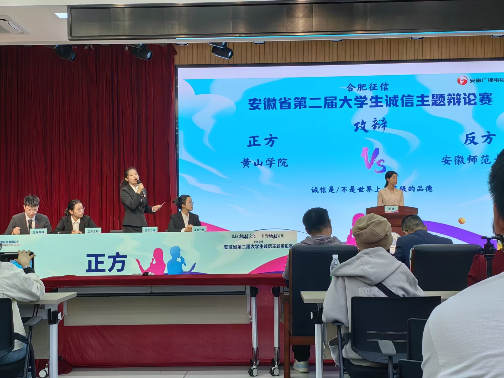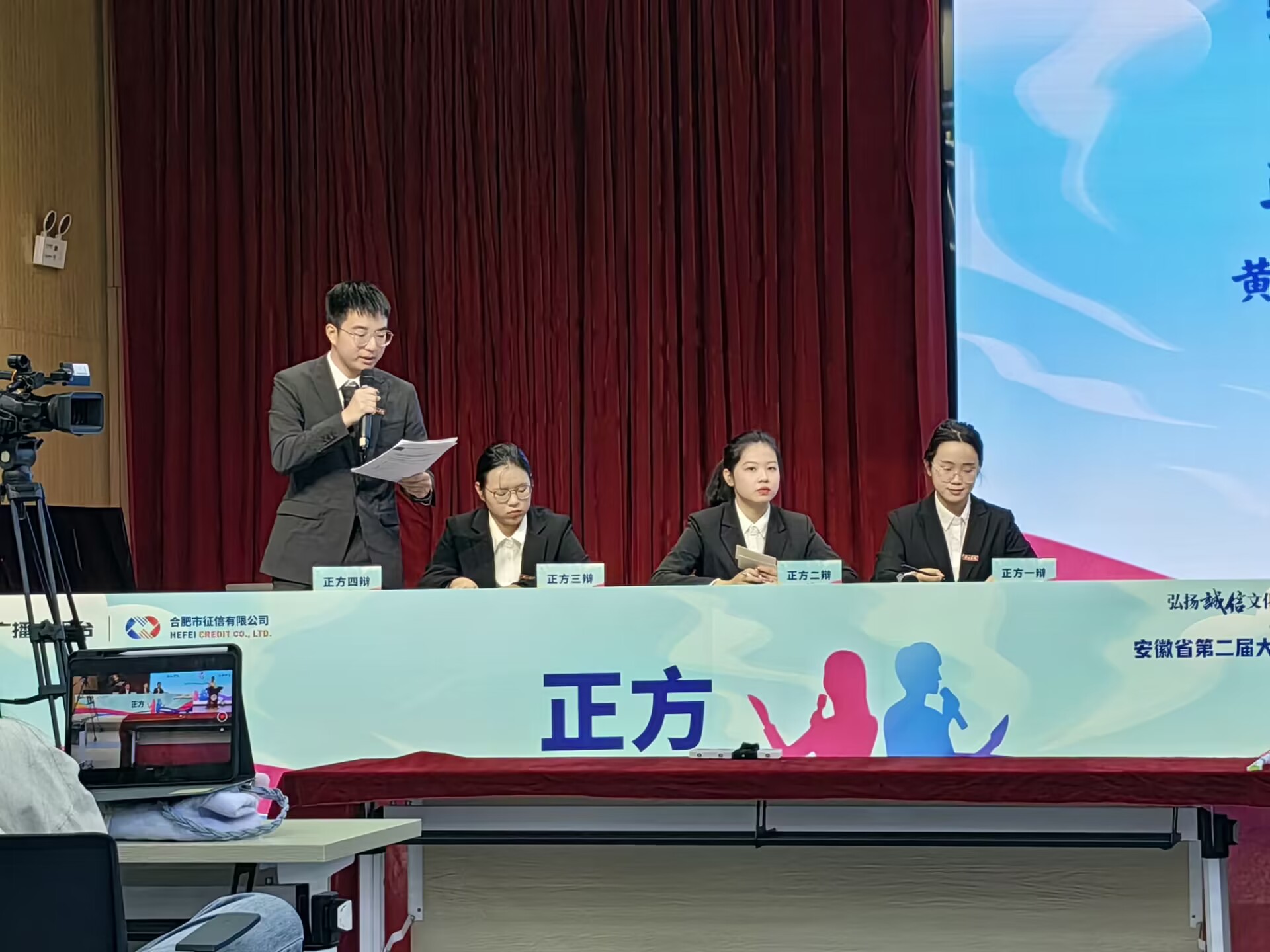 近日,由安徽省发展和改革委员会、安徽省教育厅主办,安徽广播电视台承办、合肥市征信有限公司冠名的安徽省第二届大学生诚信主题辩论赛决赛在合肥圆满结束。在激烈的角逐中,我校代表队光荣夺得全省季军,太阳集团tyc151cc毕然同学斩获最佳辩手荣誉。