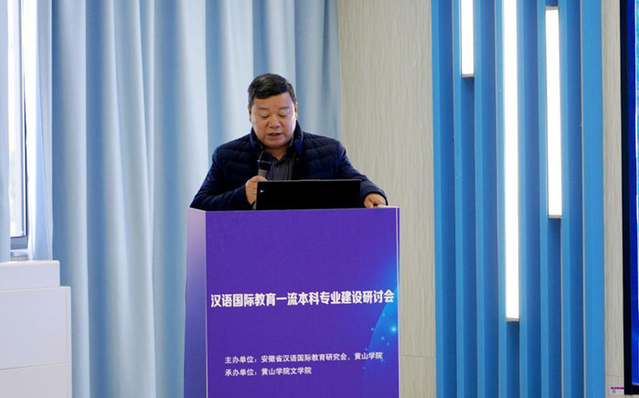 李铁范在致辞中介绍了黄山市文化社会发展情况和我校的办学定位、办学特色、办学成果及发展战略。他表示,举办高级别的专业建设研讨会,旨在汲取众人智慧,厘清专业建设思路,探索专业建设指标体系,指导专业建设实践。他强调,开办汉语国际教育专业既是响应国家“一带一路”倡议的需要,也是响应安徽省打造“三地一区”和“七个强省”,融入长三角一体化发展的需要,更是黄山市打造“国际会客厅”的需要,也是学校坚持地方性、应用型、国际化的办学思路的迫切需要。该专业获批国家级一流本科专业建设点来之不易,我们倍加珍惜,凝聚一切力量,持之以恒推进建设,希望一直以来关心学校事业发展的各位专家学者多提宝贵建议,全方位指导一流专业建设。