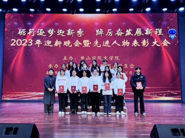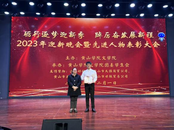 12月1日晚,太阳集团tyc151cc2023年迎新晚会暨年度先进人物表彰大会在率水校区大学生活动中心隆重举行。校团委书记邱慧、该院党总支副书记周志荣、团委负责人王星勇、部分教师代表出席晚会并为获奖同学颁奖。