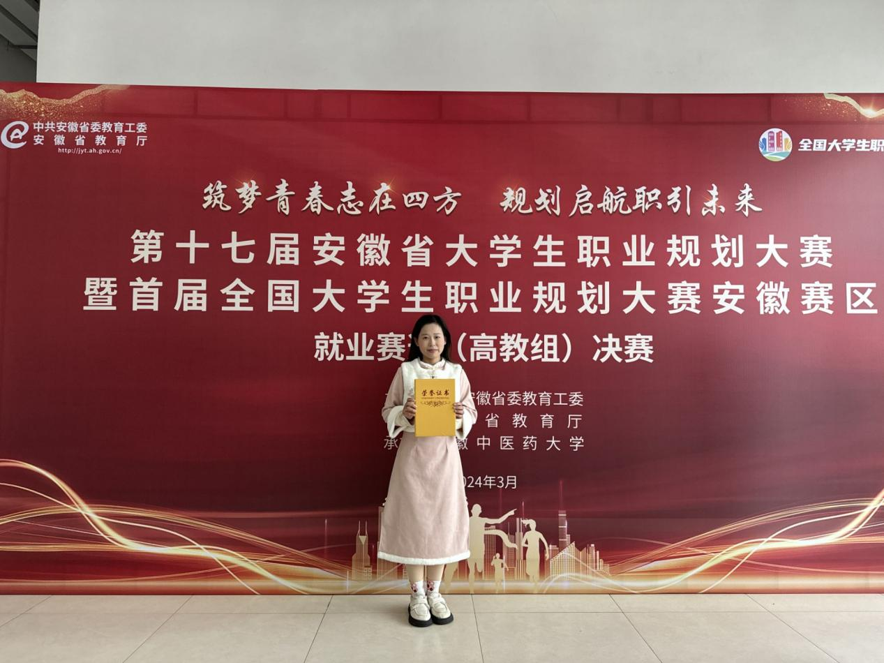 3月13日至14日,由安徽省委教育工委、省教育厅主办的第十七届安徽省大学生职业规划大赛暨首届全国大学生职业规划大赛安徽赛区决赛在合肥圆满落幕。经过激烈角逐,我院21中文2班张晶晶斩获成长赛道(高教组)二等奖。