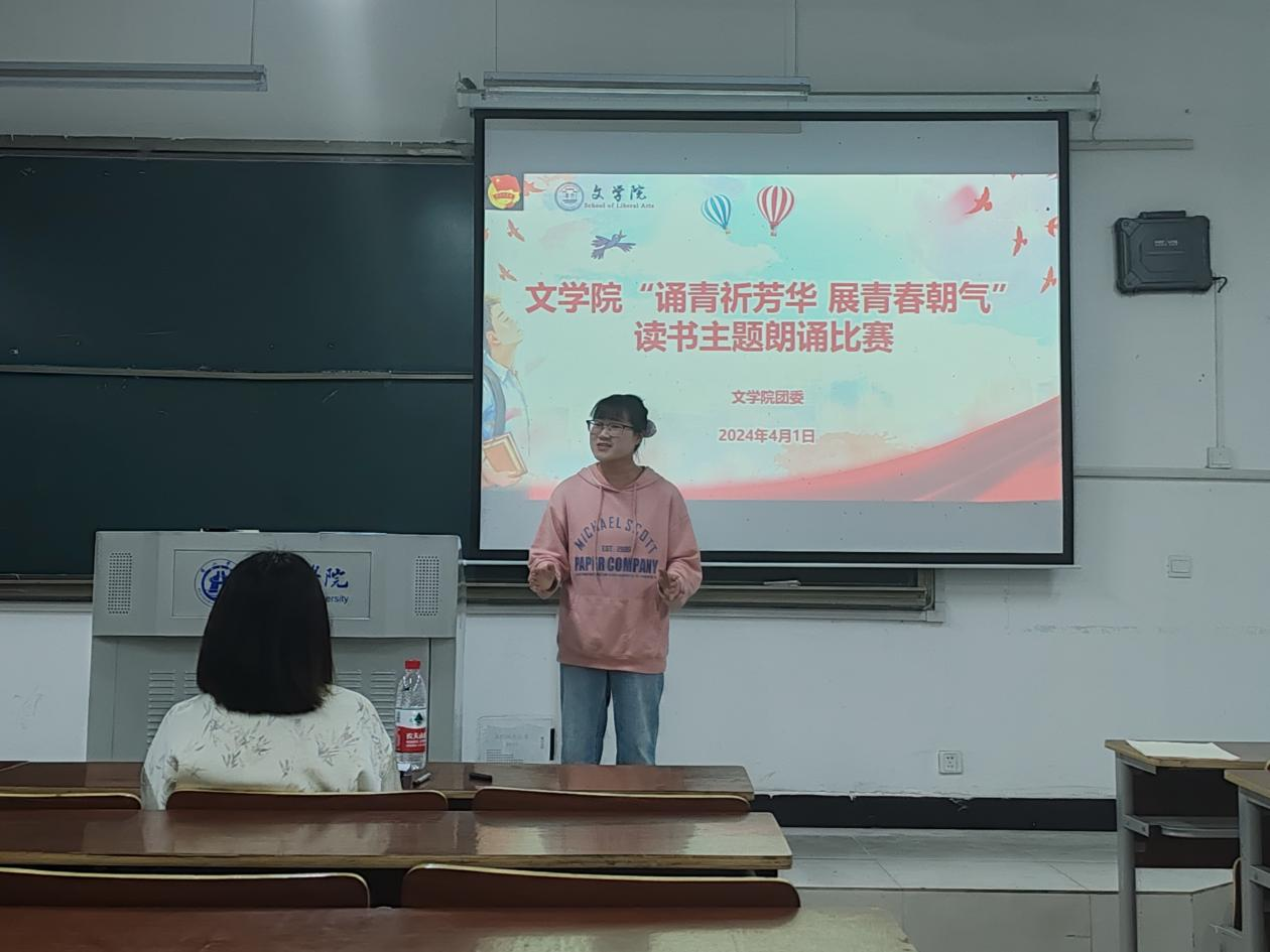 4月1日晚,“诵青衿风华,展青春朝气”太阳集团tyc151cc读书主题朗诵比赛于文端楼2205教室举行。该院团委负责人王星勇,学生党支部书记王琼作为评委应邀出席参加。