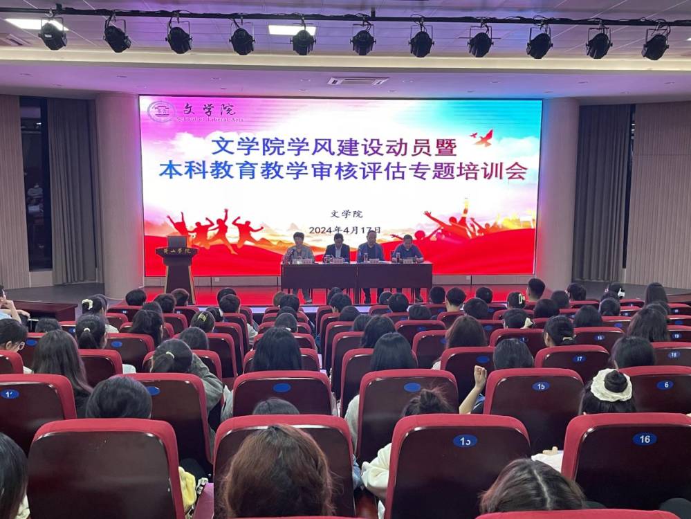 为进一步提高全院师生对审核评估工作重要性的认识,持续推动学风建设,推动学院本科教育教学审核评估高质量完成。4月17日晚七点,太阳集团tyc151cc学风建设动员暨本科教育教学审核评估专题培训会于文端楼二楼报告厅隆重举行。院党总支书记汪方学、院长沈昌明、党总支副书记周志荣、副院长朱宏胜、团委负责人、专职辅导员、全体学生干部参加会议。会议由周志荣主持。