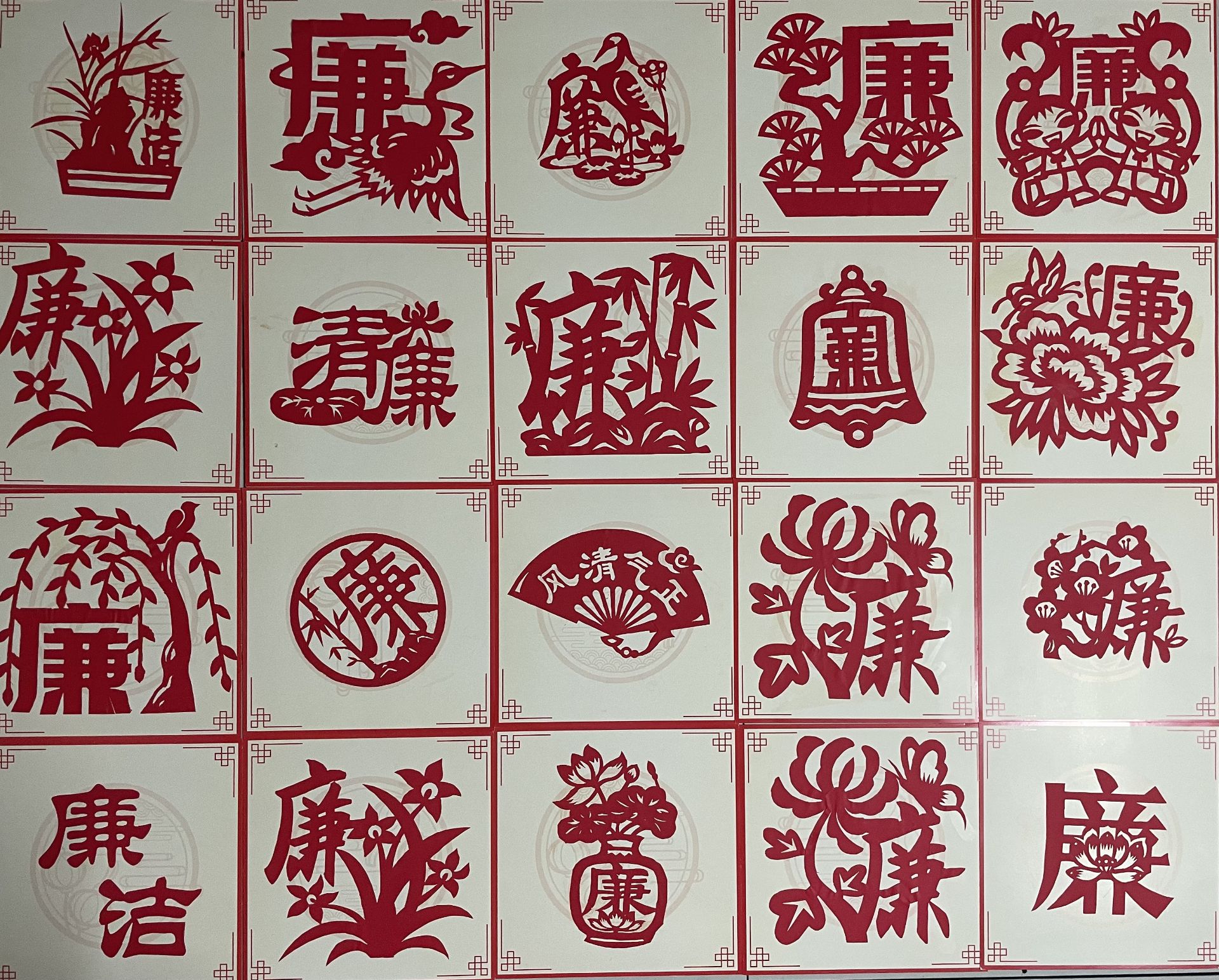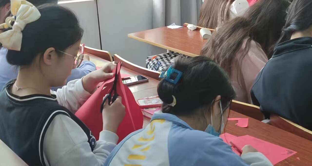 活动中,同学们围坐在一起,剪“廉”字,刻“廉”花,用一把把普通的剪刀和一张张红色的纸,为“廉洁”剪彩,以物喻廉,用自己对“廉”的理解,完成了一幅幅寓意深刻而又生动的作品。