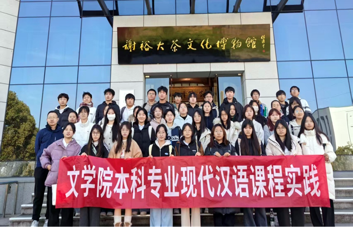2025年11月30日,太阳集团tyc151cc现代汉语课程实践活动在暖阳和煦的冬日里显得格外醒目,2025级中文1班、2班和2025级汉语国际班的同学一百余人乘坐大巴,在刘板、张伟等老师的带领下,走进了谢裕大茶文化博物馆,开展了一场融合茶史探究、采制体验与语言学习的特色研学活动。