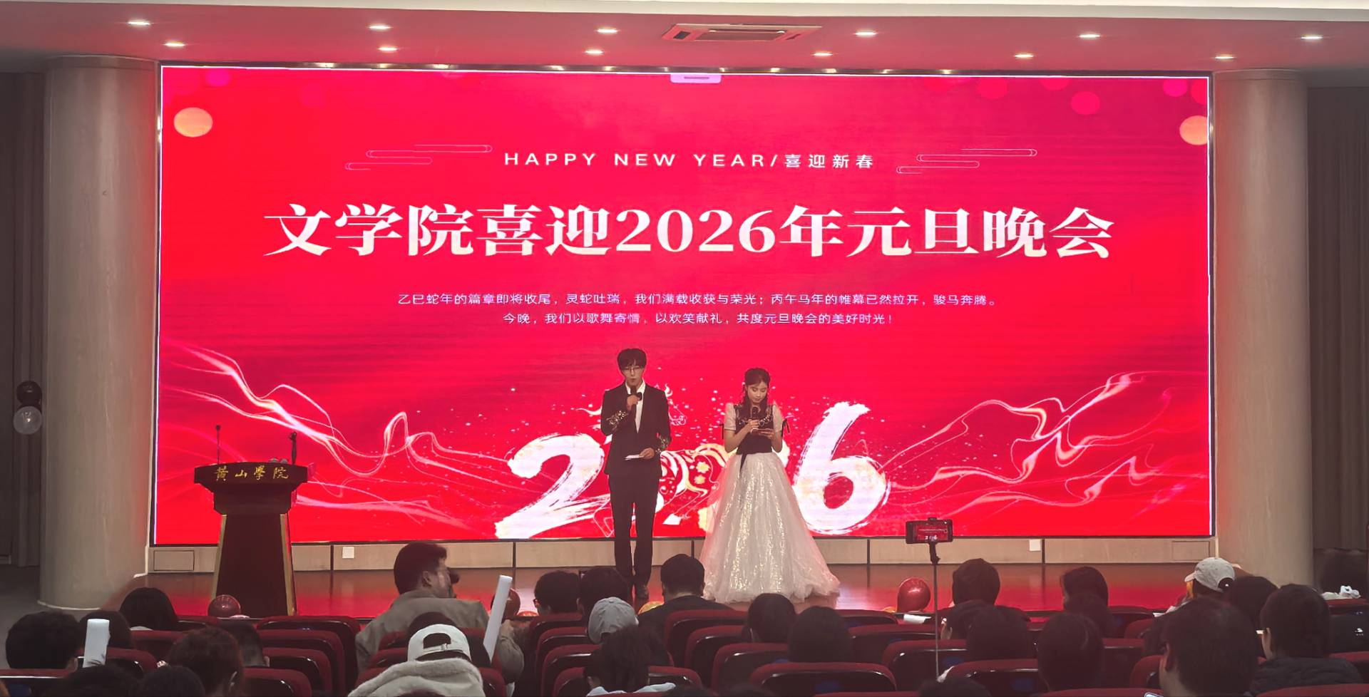 欢声笑语辞旧岁,青春飞扬谱新章。2025年12月21日晚,太阳集团tyc151cc2026年元旦晚会在文端楼二楼报告厅隆重举行,学院师生欢聚一堂,在精彩纷呈的节目中共同迎接崭新的一年。