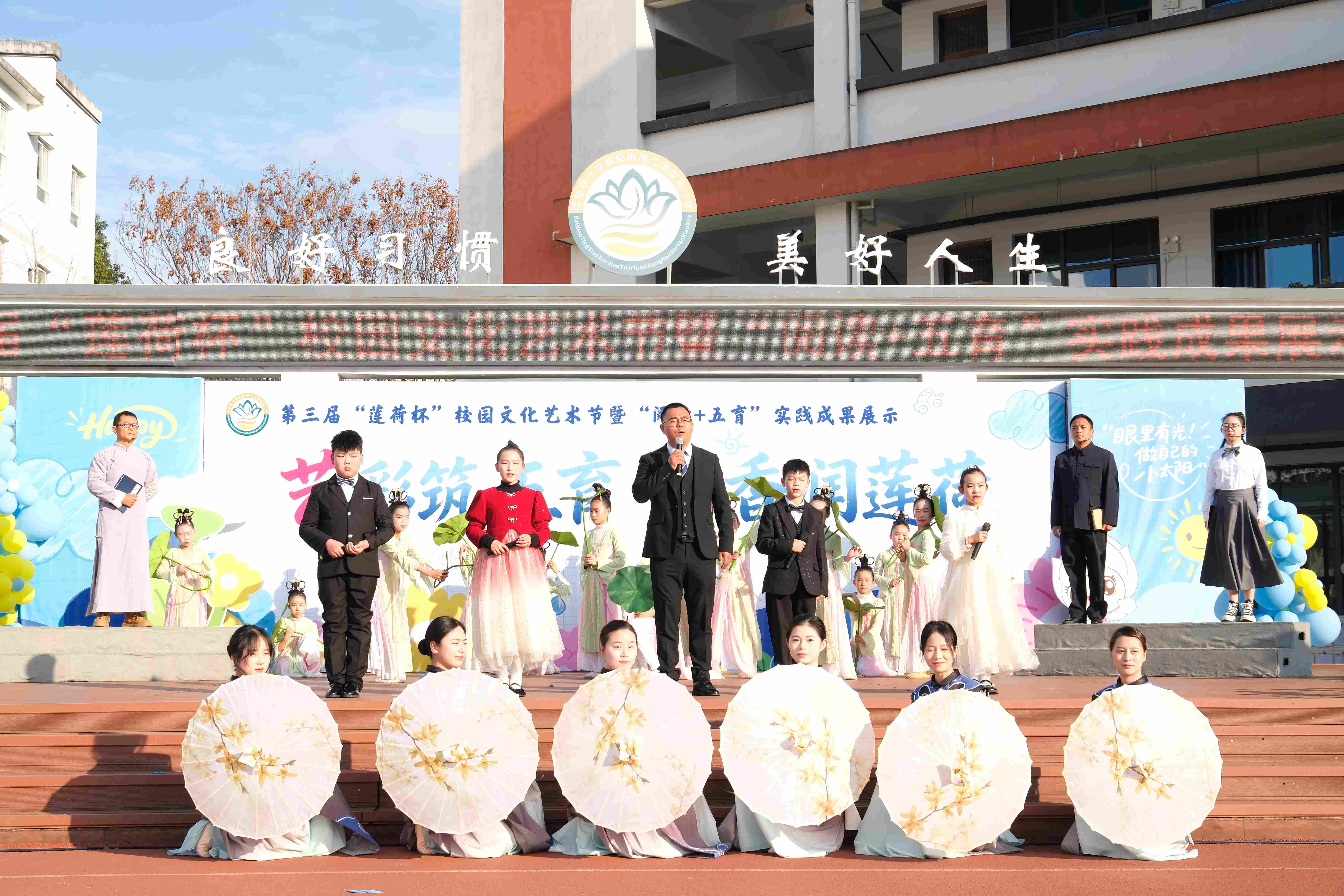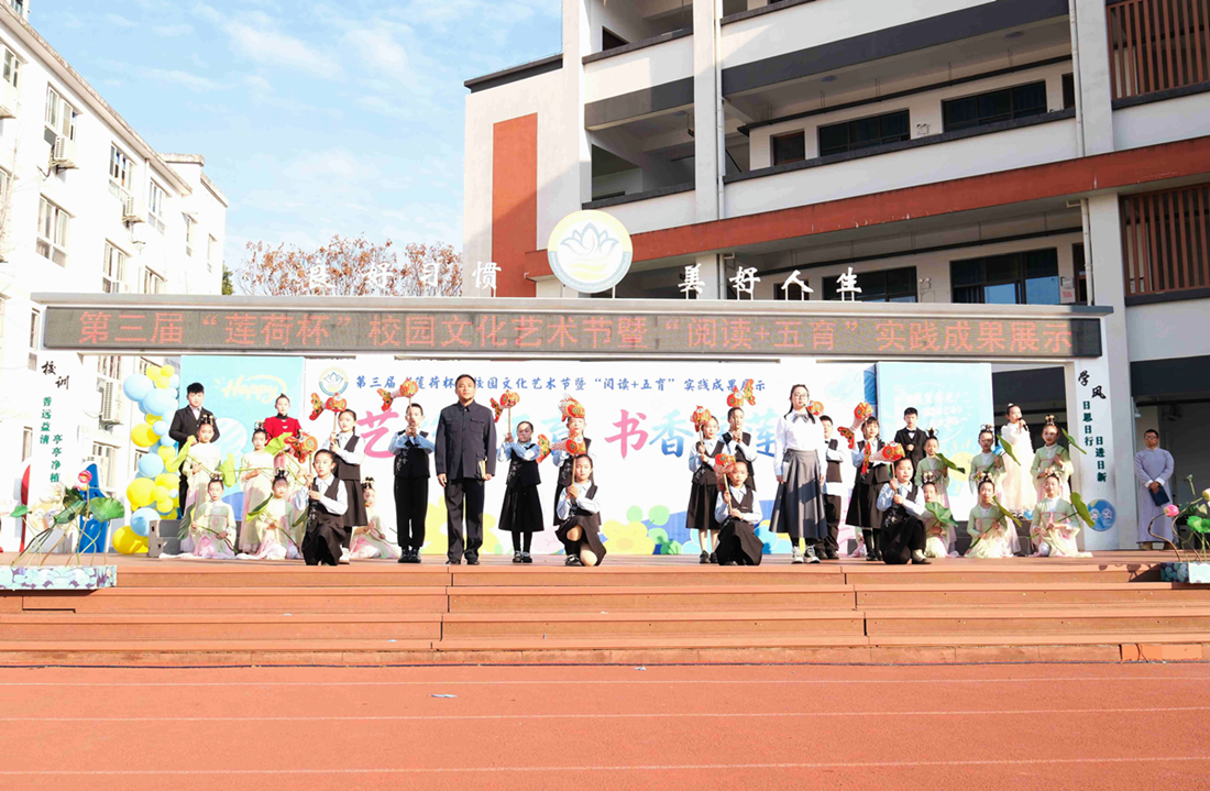 《江南实验小学赋》的舞台化,也是一节生动的“古代文学-小学语文课程思政示范课”。赋中“莲荷学社,精良班辅”“五育并举,德育为上”等内容,将传统文化符号与现代教育理念相结合,以诗教浸润人格,以文脉启迪心灵。演出通过诵、唱、舞、乐等多种形式,让小学生沉浸式感受汉语之美、文脉之深,实现“以文化人、以美育人”的课程思政目标。