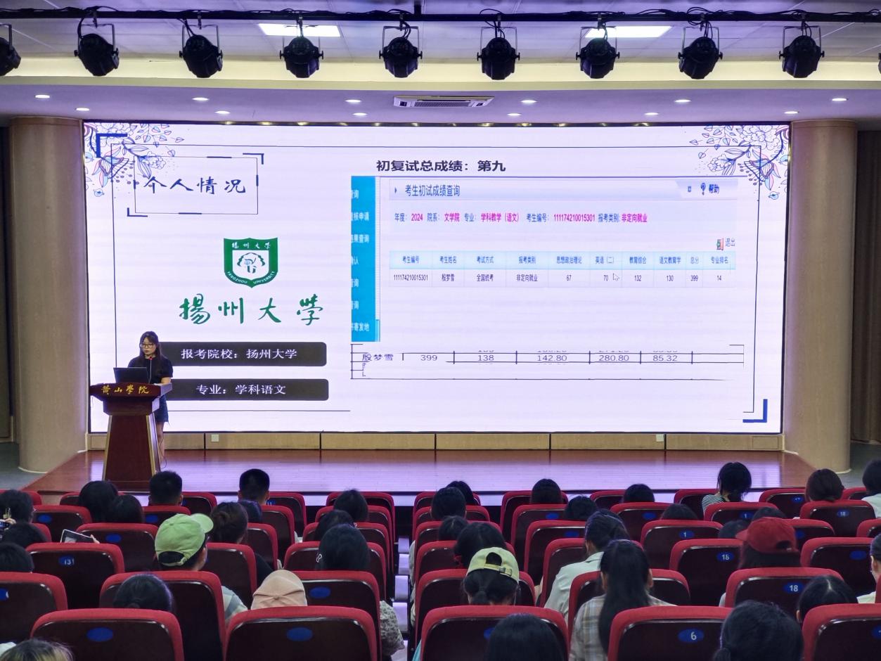 分享会上,20中文一班殷梦雪和22中文专升本一班徐云燕分享了备战考研的经验。她们结合自身经历,围绕目标选择、备考规划、学习方法、心态调整等方面展开分享,强调时间管理,理解记忆,提高效率,同时,要注重身体锻炼,调整心态,坚定信念,以积极健康的心态备战。
