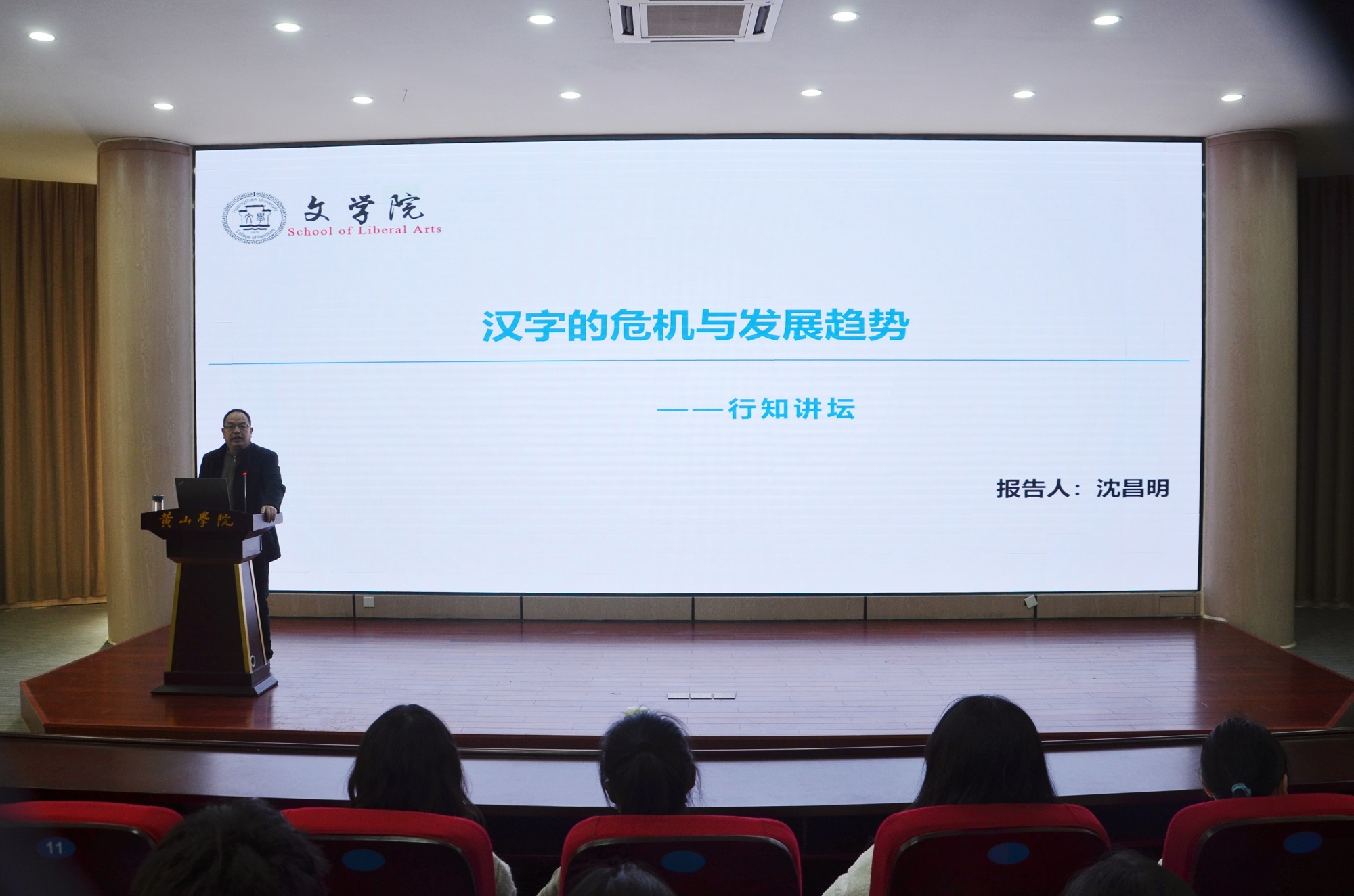3月2日下午,太阳tyc151cc“行知讲坛”报告会在文端楼二楼报告厅举行。太阳集团tyc151cc副教授沈昌明应邀作题为“汉字发展危机与汉字发展总趋势”的报告,两百多名师生参加活动。