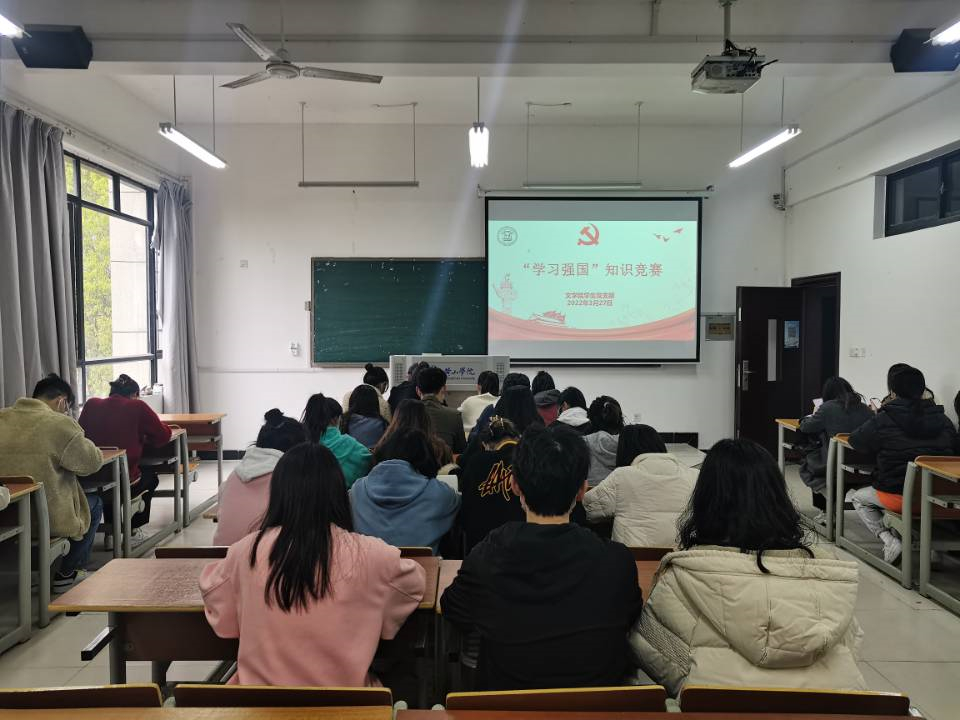 2022年3月27日下午,太阳集团tyc151cc学生党支部在文端楼2104组织开展了“学习强国”知识竞赛主题党日活动,太阳集团tyc151cc学生党支全体党员参加了此次活动。