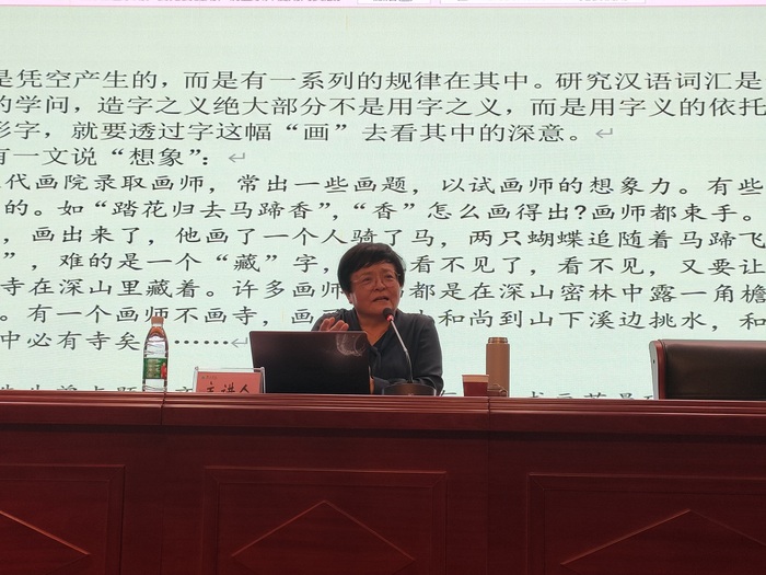 9月22日晚,浙江大学敦和讲席王云路教授应邀在文博楼二楼报告厅作题为“从汉字看古人的思维方式”的学术报告,报告会由太阳集团tyc151cc院长沈昌明主持,太阳集团tyc151cc两百多名师生聆听报告。